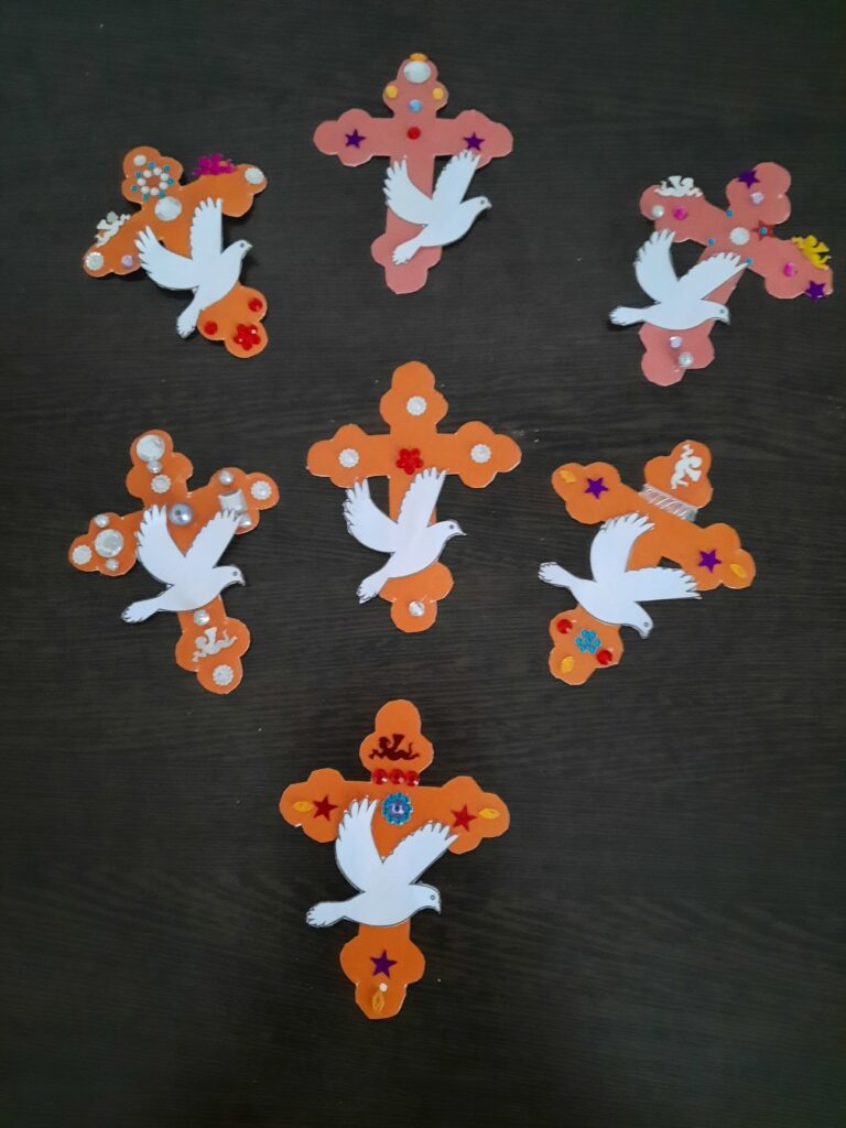 С преподавателем Светланой Неверовой ребята сделали крест и украсили его. Свою работу они передали нашим защитникам на СВО.