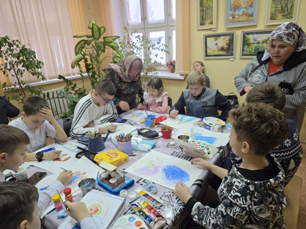 Бугуруслан. 14 декабря 2025 года воспитанники Воскресной школы «Горлица» храма Успения Пресвятой Богородицы г. Бугуруслана приняли участие во Всероссийской акции «Крылья Ангела». Мероприятие состоялось в стенах ЦГБД имени С.Т. Аксакова совместно с заведующей отделом выставочного зала, членом союза пастелистов России и творческого союза художников России Ольги Евдокимовой.