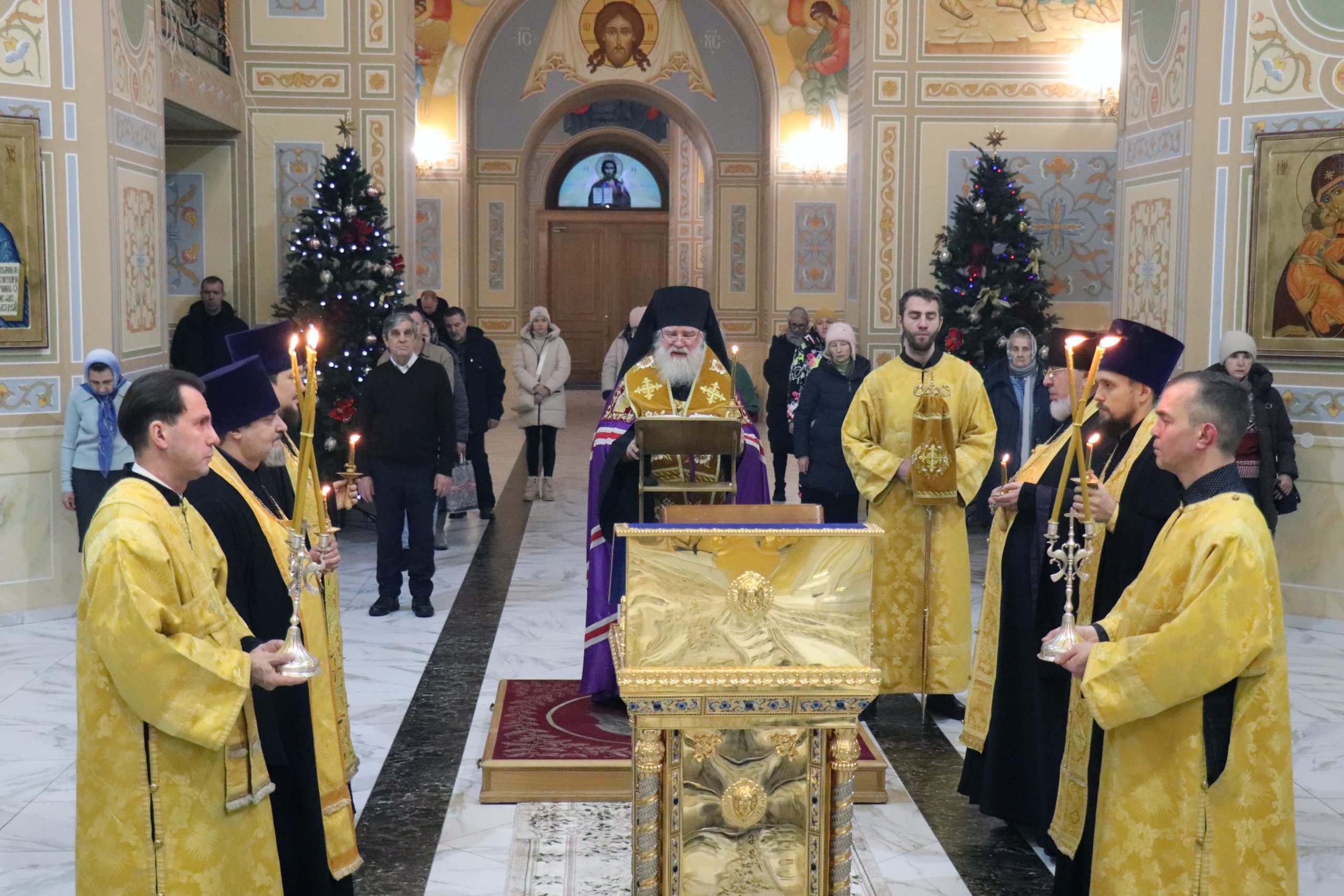 Бузулук. 5 января 2026 года в понедельник седмицы 31-й по Пятидесятнице, Предпразднство Рождества Христова, епископ Бузулукский и Сорочинский Алексий совершил Божественную литургию и накануне вечернее богослужение в Свято-Троицком кафедральном соборе.
