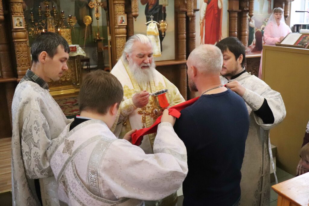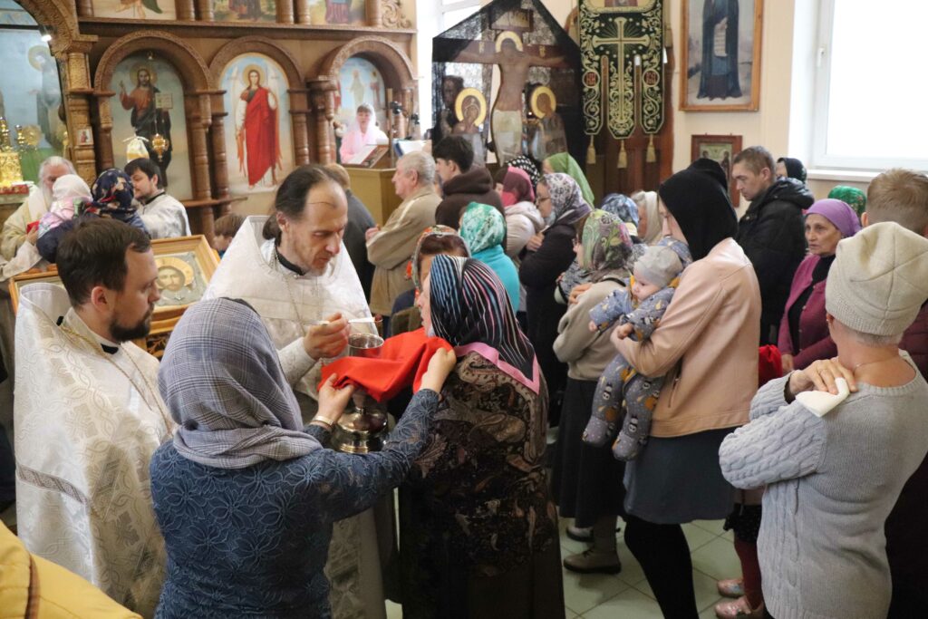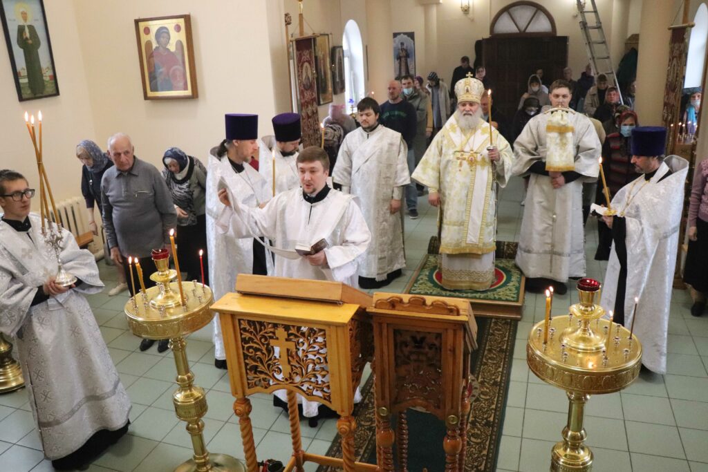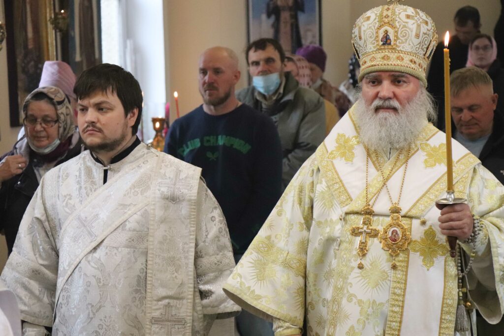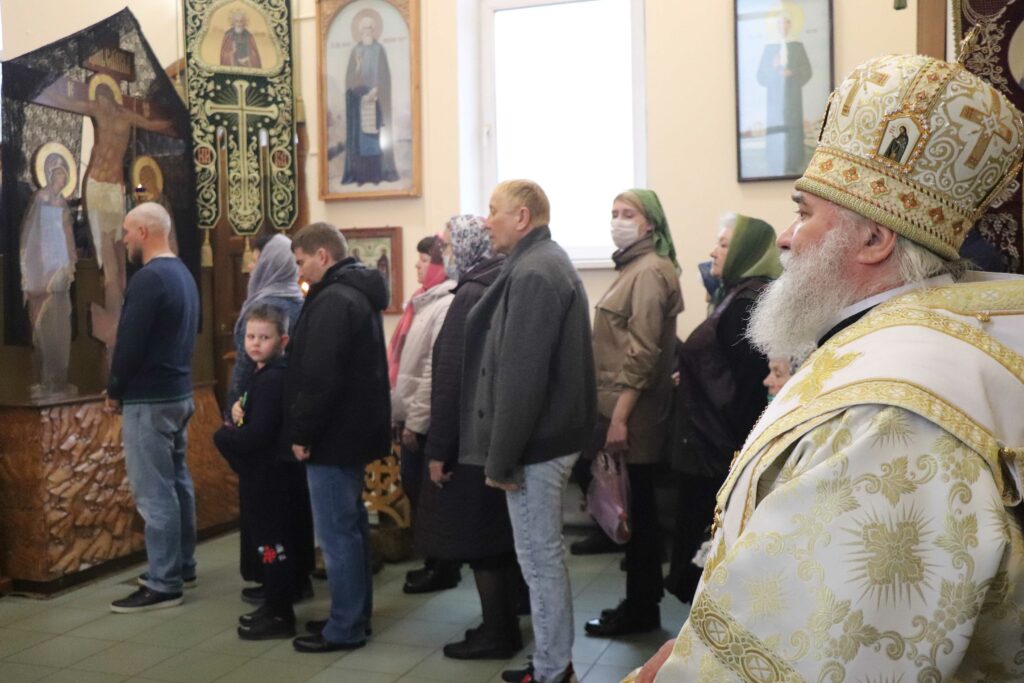 Его Преосвященству сослужили иерей Вадим Зотов, иерей Анатолий Марченков, иерей Сергий Шумилин, диаконы Давид Ганиев и Дионисий Горбунов. Пел хор под управлением Натальи Задориной.