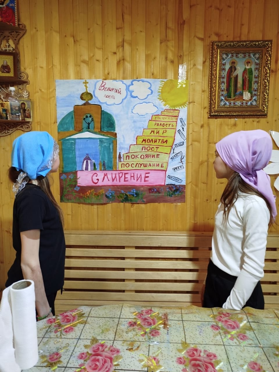 По окончании урока ребята составили и нарисовали собственную Лествицу, чтобы следовать по этой лесенке добродетелей к великому празднику — Воскресению Христову — светлыми и обновлёнными.