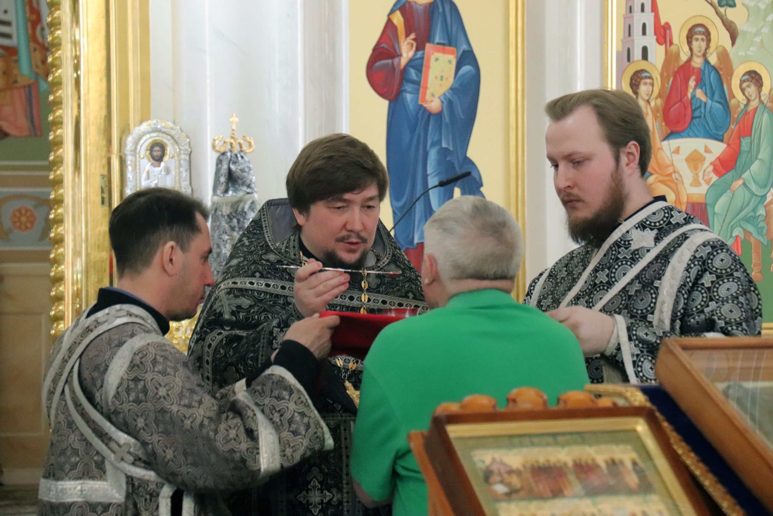 Его Преосвященству сослужили: секретарь Бузулукской епархии иерей Дионисий Горбунов, иерей Анатолий Марченков, иерей Вадим Зотов и диакон Иоанн Шумилин.