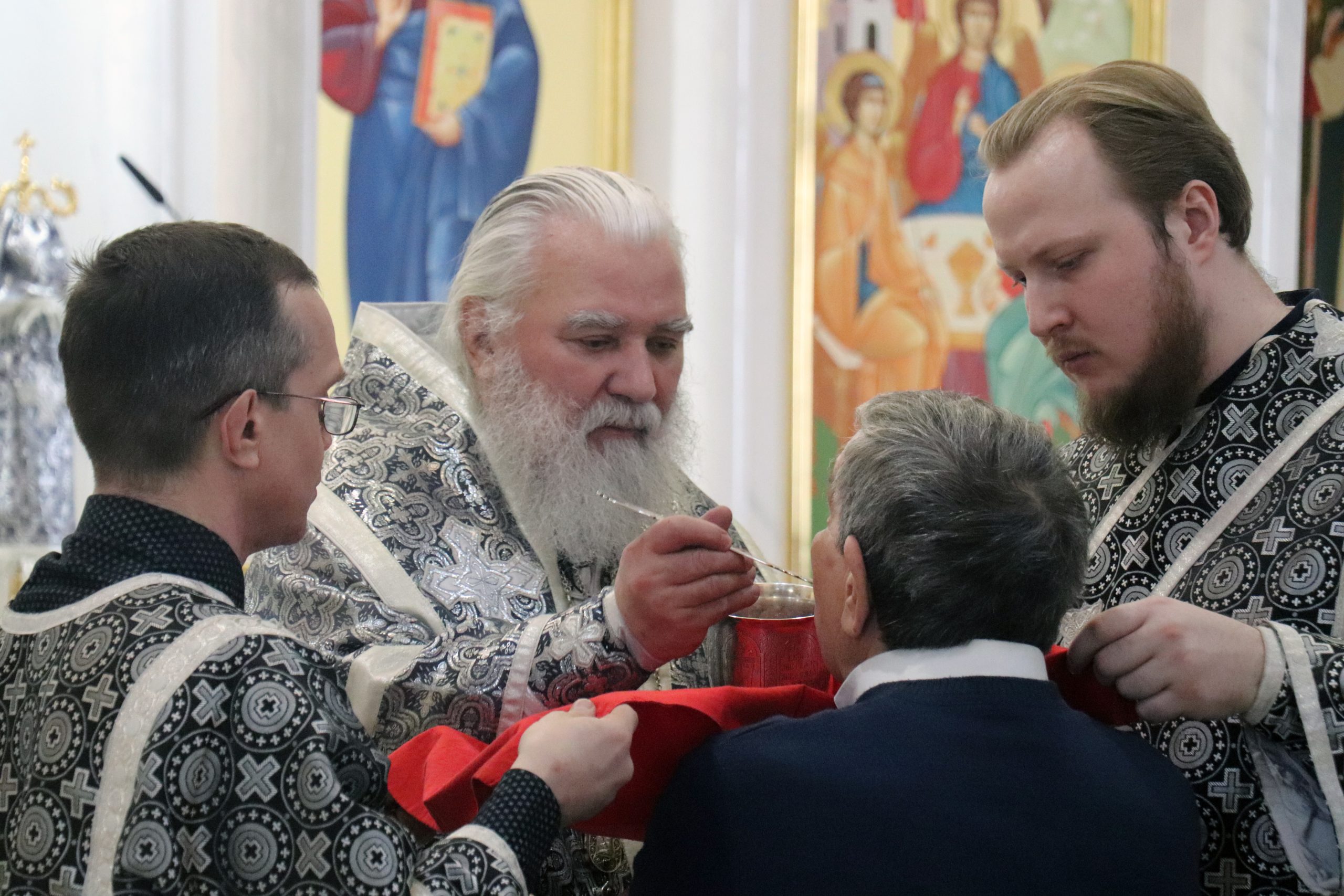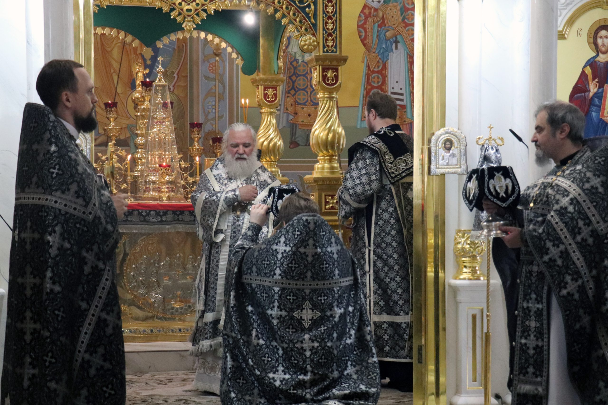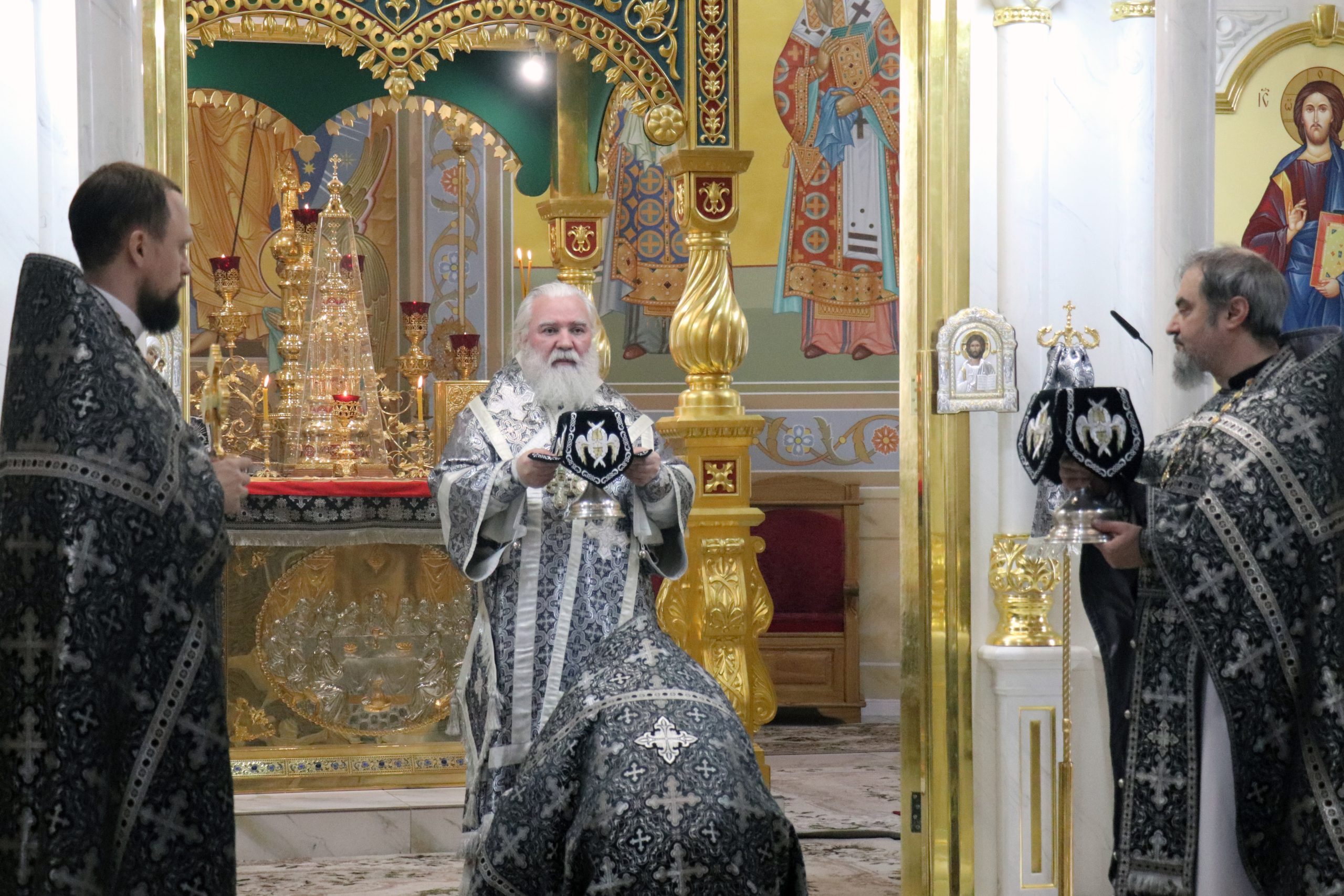 Его Преосвященству сослужили: секретарь Бузулукской епархии иерей Дионисий Горбунов, иерей Анатолий Марченков, иерей Вадим Зотов и диакон Иоанн Шумилин.