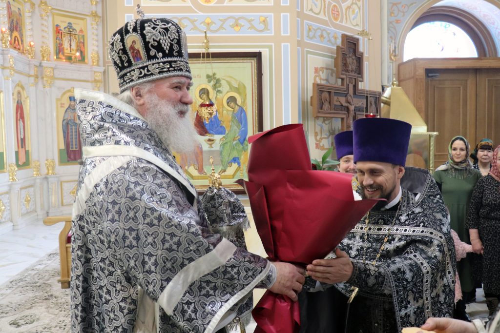 После богослужения Владыка Алексий поздравил клирика Свято-Троицкого кафедрального собора иерея Вадима Зотова с Днем Рождения, пожелав помощи Божией в несении пастырских трудов. Также отец Вадим принимал поздравление от учеников воскресной школы для взрослых, которая действует при Соборе и прихожан.