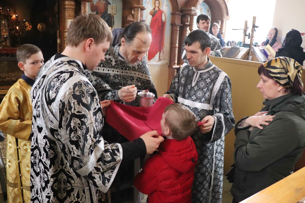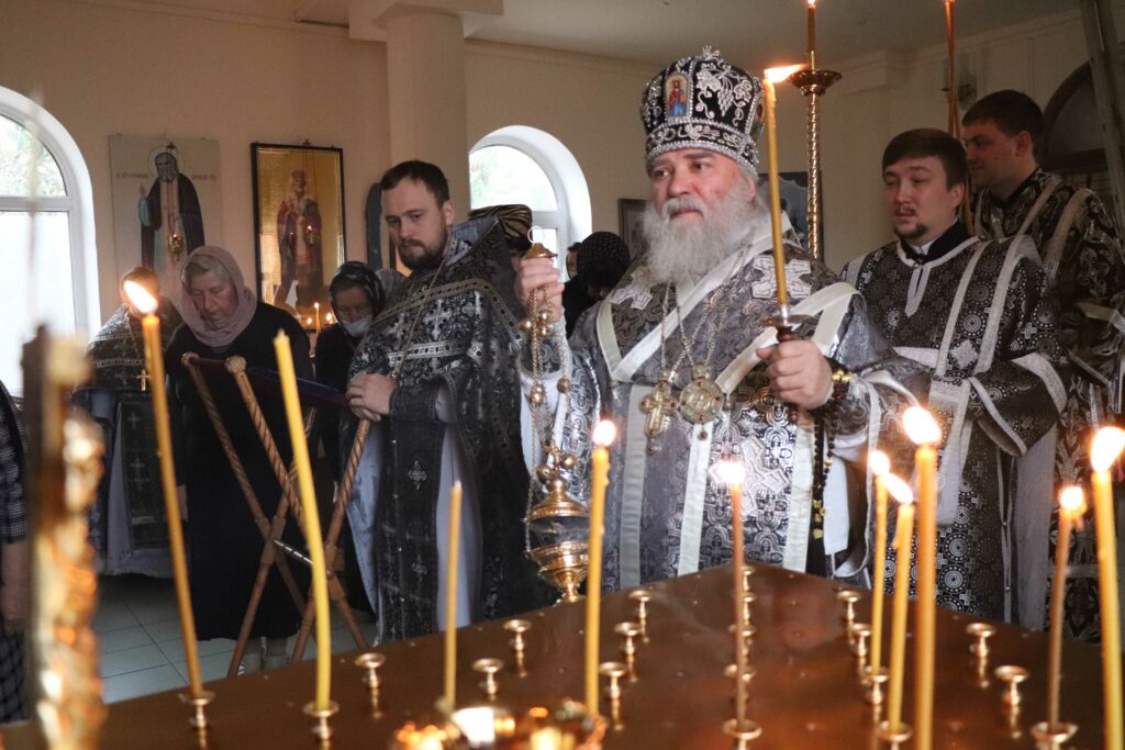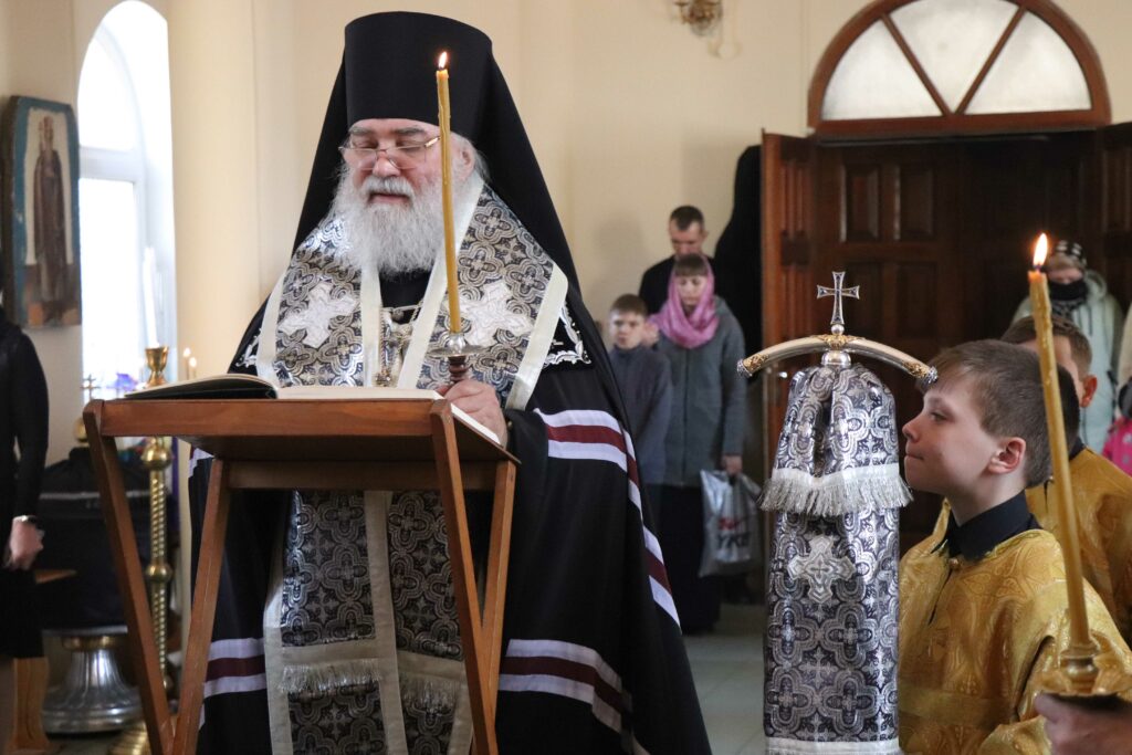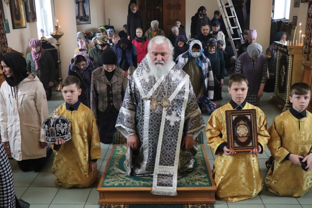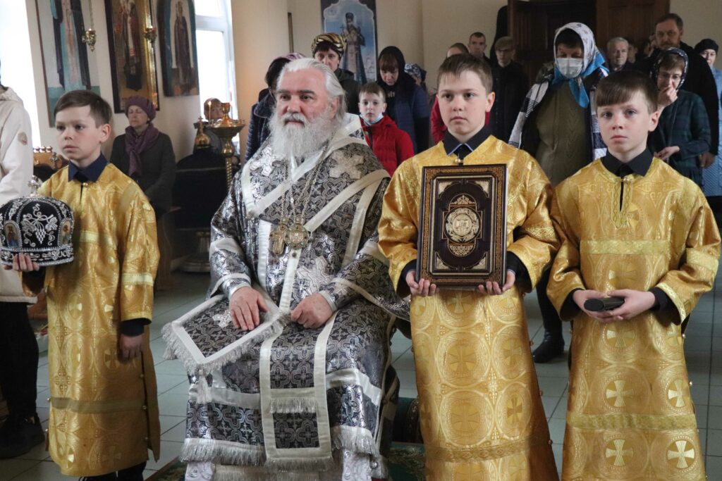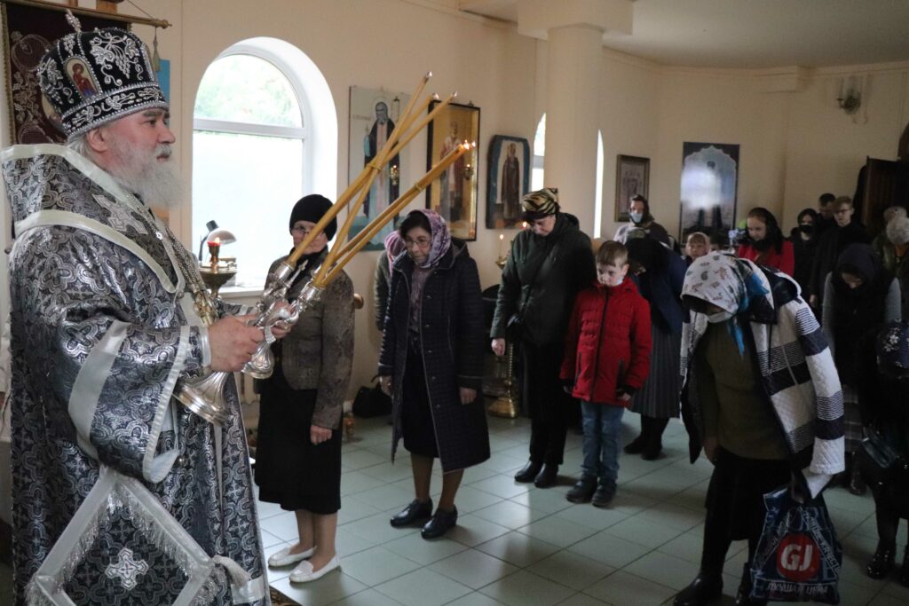 Его Преосвященству сослужили иерей Вадим Зотов, иерей Анатолий Марченков, иерей Сергий Шумилин, диаконы Давид Ганиев и Дионисий Горбунов. Пел хор под управлением Натальи Задориной.