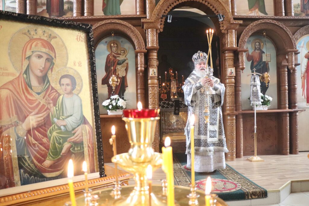 Бузулук. 27 апреля 2021 года. Страстная седмица. Великий Вторник. Память свт. Мартина исп., папы Римского (655); празднование в честь Виленской и Виленской-Остробрамской икон Божией Матери, епископ Бузулукский и Сорочинский Алексий совершил Литургию Преждеосвященных Даров в Преображенском храме Свято-Троицкого кафедрального собора и вечернее богослужение накануне в том же храме.