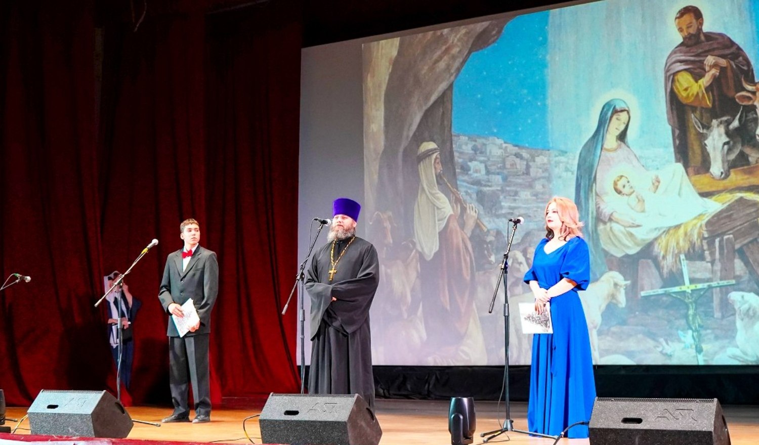 Зал порадовали своими номерами: детско-юношеский хор Благовест, рук. Анастасия Анисимова, хор храма Успения Пресвятой Богородицы, регент Людмила Ромашкова, исполнила стихотворение Надежда Костицына, молодежный хор храма Святой Троицы, рук. Ксения Юстус, театр музыки и танца «Азарт», рук. Лариса Хижнякова, Ева Деревяшкина исполнила песню «Кабы не было зимы», народный ансамбль танца «Апрель», рук. Ю Дегтева и Гюзаль Лоскутникова порадовали всех зимними танцами, вокальная студия «ЮПИ», рук. Д. Субеева, народный семейный ансамбль казачьей песни Алексеевых, рук. Елена Алексеева, народный ансамбль казачьей песни «Отрада», рук Николай Петров.