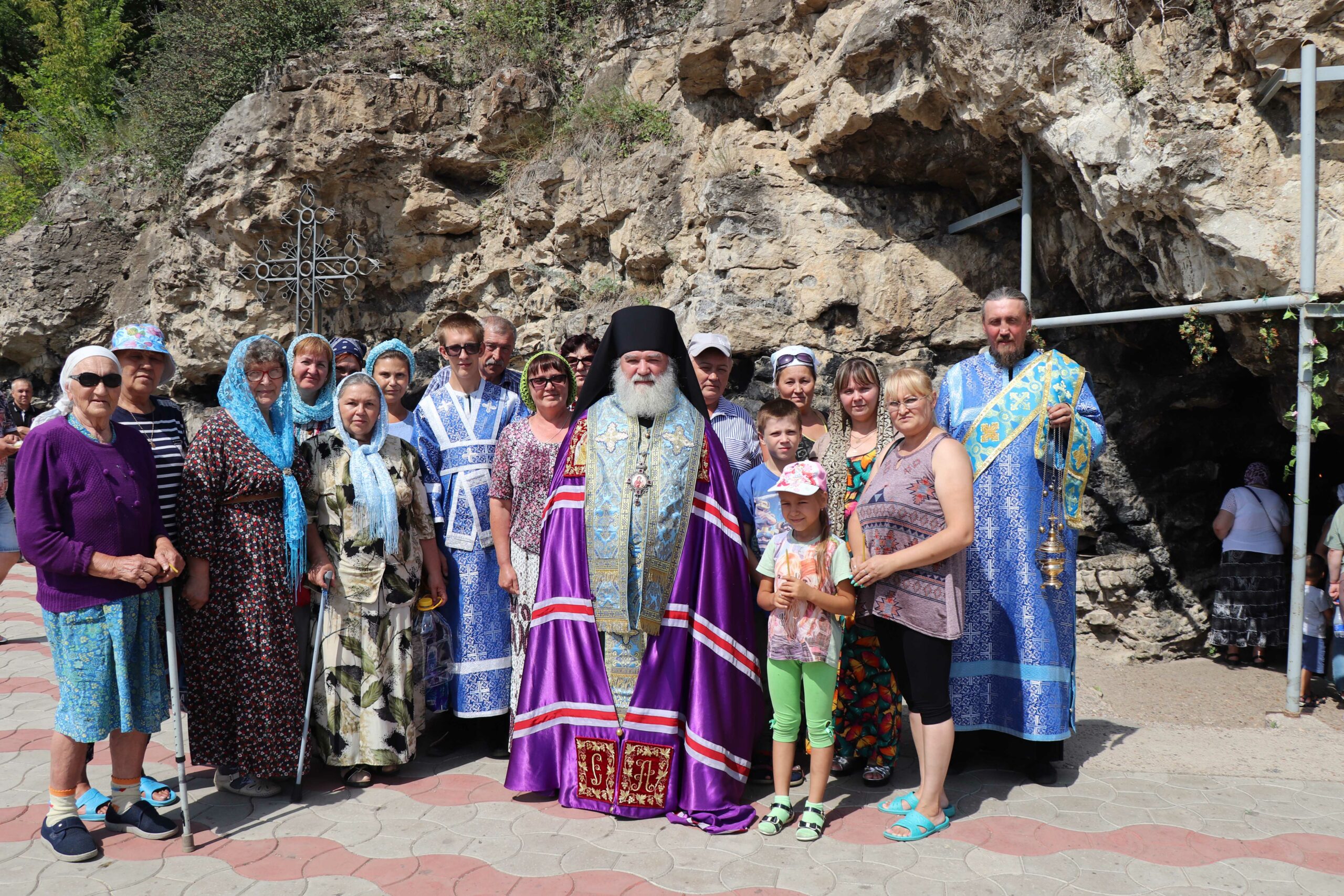 На месте явления иконы епископ Бузулукский и Сорочинский Алексий совершил богослужение с чтением акафиста Божией Матери, сослужил его Преосвященству иеродиакон Христофор (Ткаченко). Пела Наталья Задорина в сопровождении большого количества отдыхающих здесь верующих, присоединившихся к паломникам.