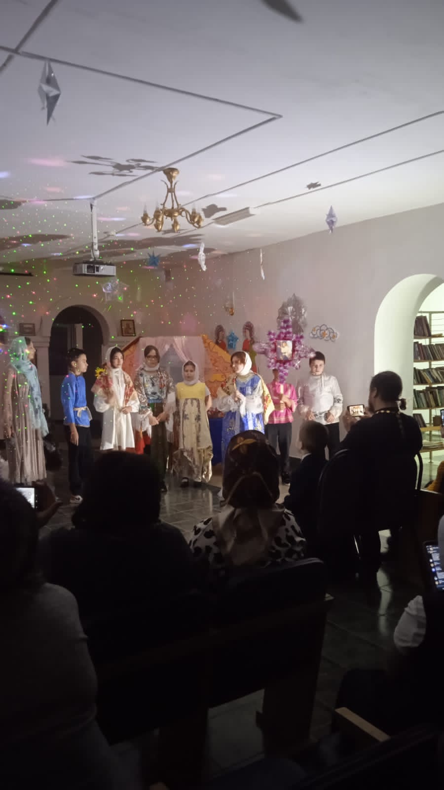 Перед представлением благочинный Северного округа настоятель храма Димитрия Ростовского иерей Виталий Прилибко поздравил всех с Рождеством Господа Бога и Спаса нашего Иисуса Христа. С наступлением Рождества на небе загорается новая звездочка и наполняет мир добротой, любовью и по-детски искренней верой в чудо.
