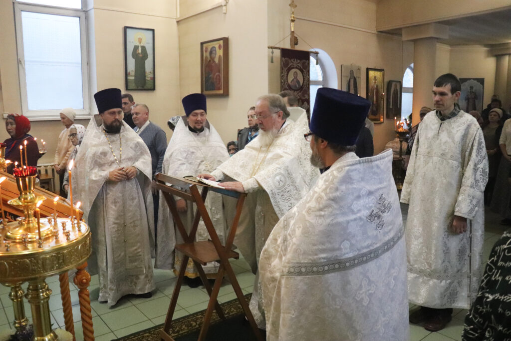 Его Преосвященству сослужили: иерей Дионисий Горбунов, архимандрит Ефрем (Матынцев), иерей Вадим Зотов, и иерей Анатолий Марченков. Пел хор под управлением Наталии Задориной.