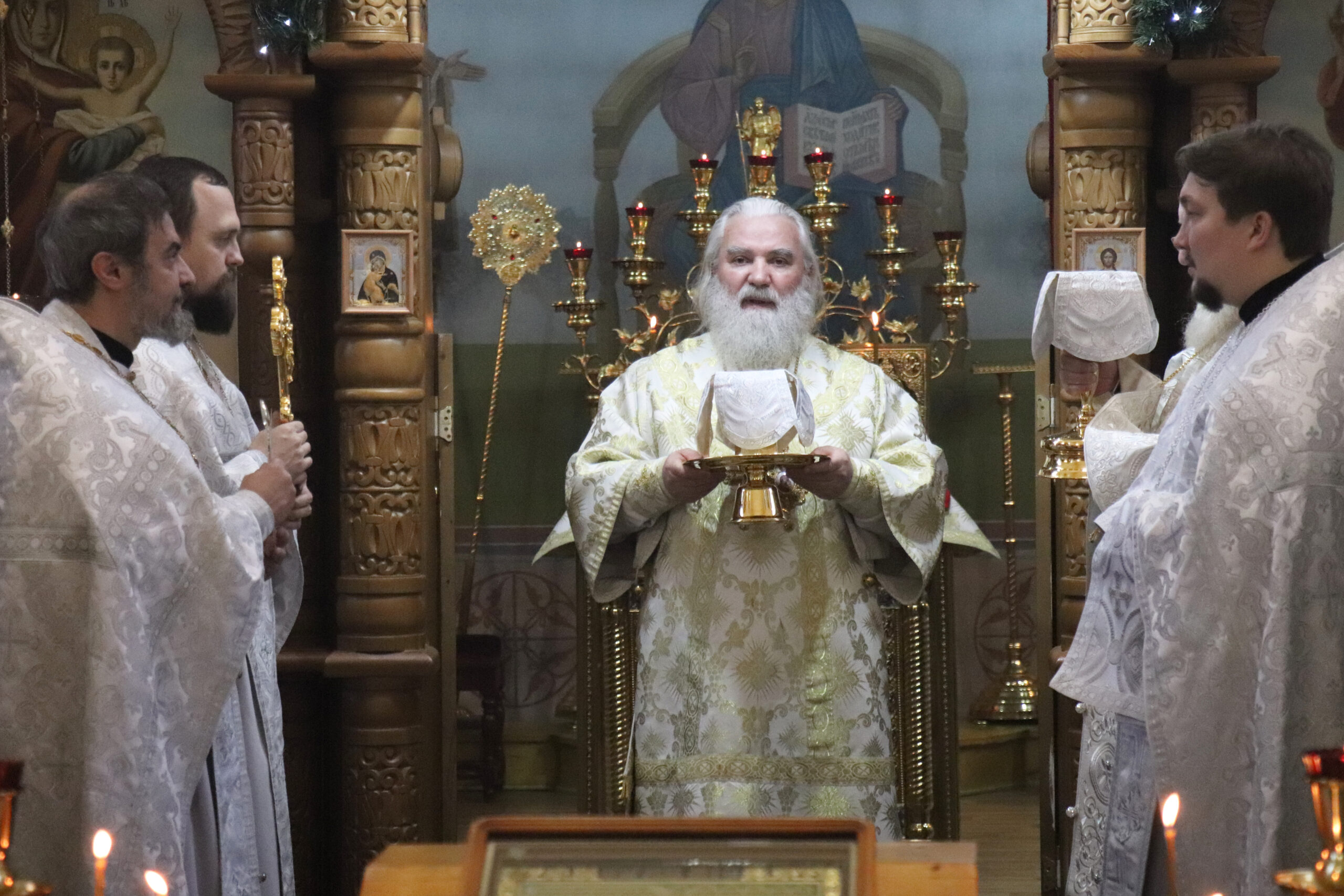 Бузулук. 6 января 2023 года, в пятницу седмицы 30-й по Пятидесятнице, Навечерие Рождества Христова (Рождественский сочельник) епископ Бузулукский и Сорочинский Алексий совершил Божественную литургию Василия Великого в Преображенском храме Свято-Троицкого кафедрального собора.