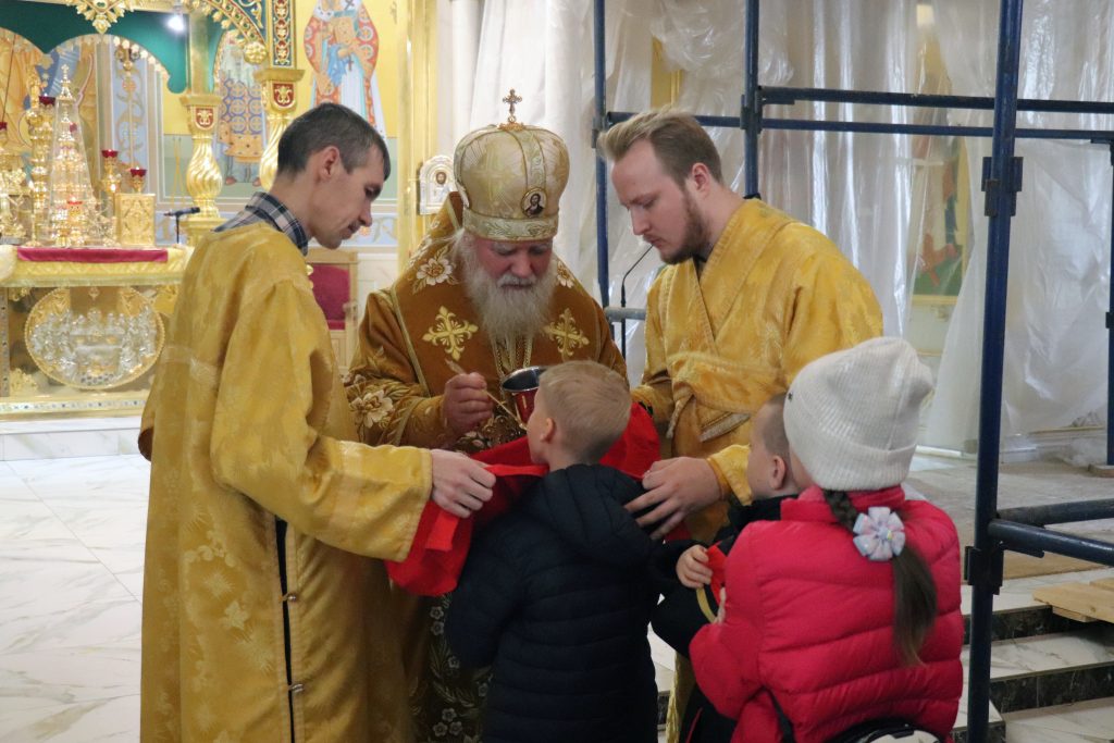 Его Преосвященству сослужили: секретарь Бузулукской епархии иерей Дионисий Горбунов, архимандрит Ефрем (Матынцев), иерей Михаил Цапяк, иерей Анатолий Марченков, иерей Вадим Зотов и диакон Иоанн Шумилин.