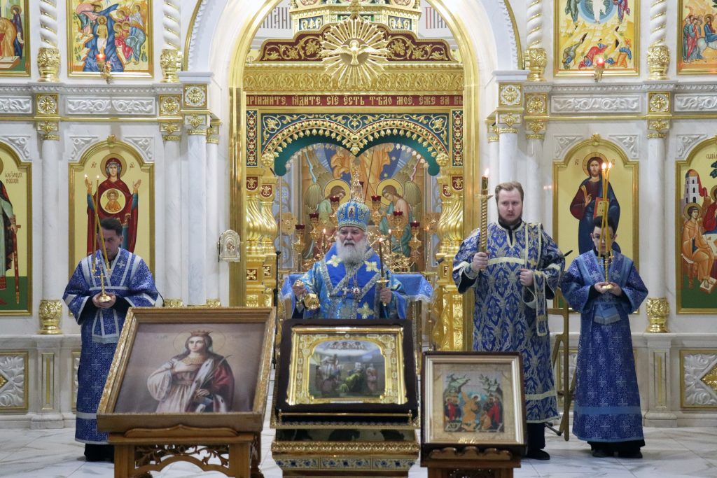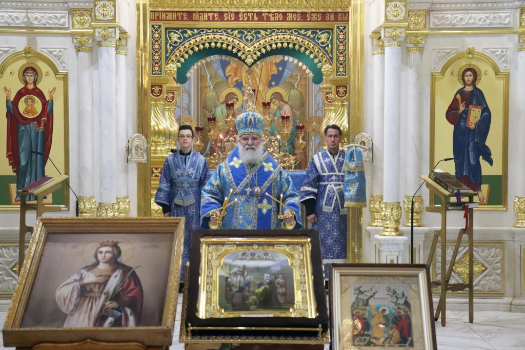 По отпусте Литургии Владыка Алексий обратился с проповедью на тему сегодняшнего Евангельского чтения, а также побеседовал о житии и духовном подвиге ныне воспоминаемых великомученицы Екатерины, великомученика Меркурия, мученика Меркурия Смоленского.