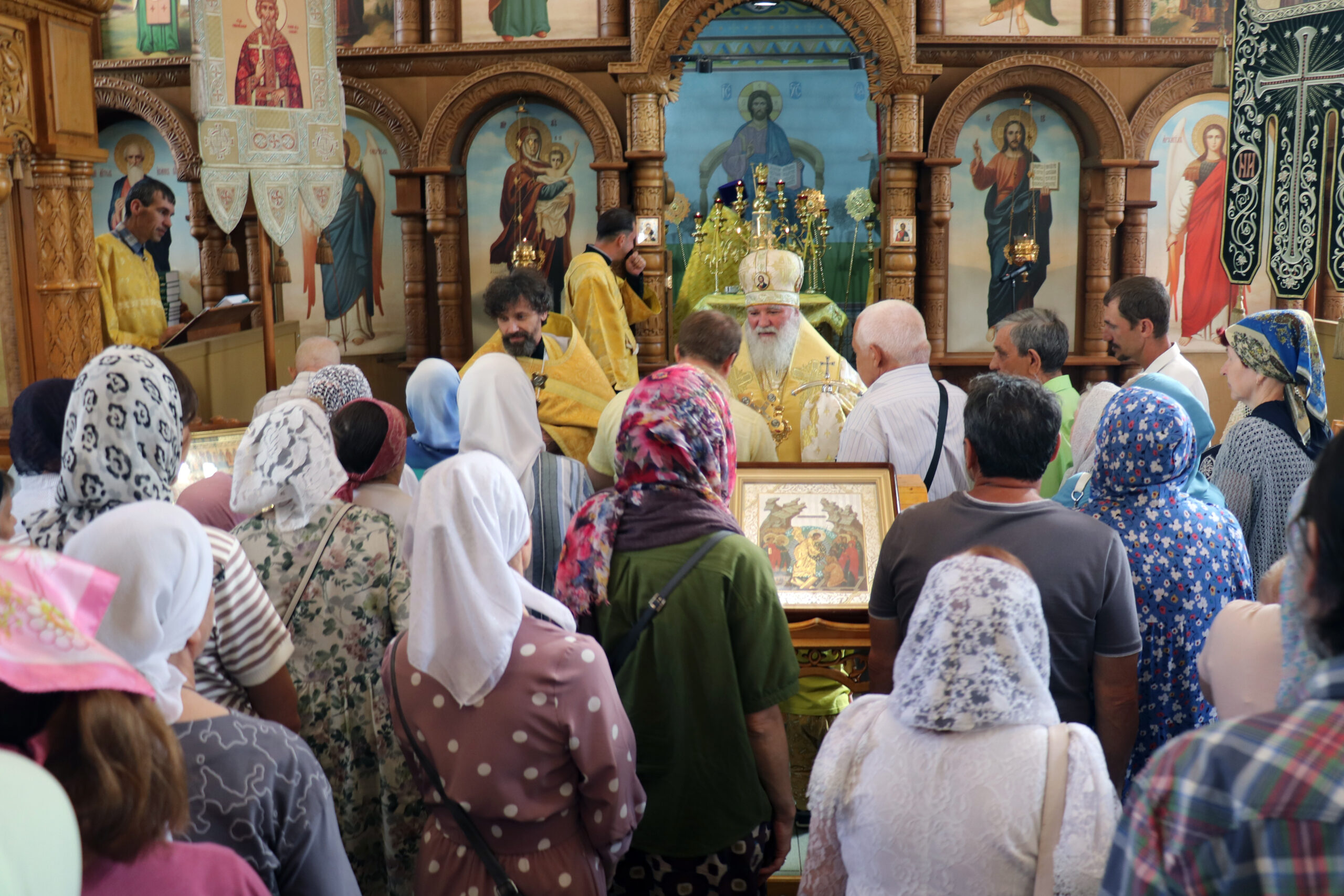 Бузулук. 20 июля 2025 года, в Неделю 6-ю по Пятидесятнице, память преподобной Евфросинии, в миру Евдокии, великой княгини Московской (1407), епископ Бузулукский и Сорочинский Алексий совершил Божественную литургию и накануне всенощное бдение в Преображенском храме Свято-Троицкого кафедрального собора.