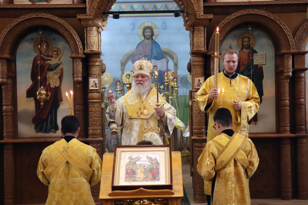 По отпусте Литургии Владыка Алексий обратился к прихожанам с проповедью на тему сегодняшних Апостольских и Евангельских чтений. Архиерей напомнил слова апостола Павла: Умоляю вас, братия, именем Господа нашего Иисуса Христа, чтобы все вы говорили одно, и не было между вами разделений, но чтобы вы соединены были в одном духе и в одних мыслях (1Кор. 1:10). То есть мы должны быть единомысленны и единодушны. А чтобы быть действительно единодушными, надо исполнять заповеди Божии. Ибо Дух Божий посещает каждого человека, но может пребывать в нем, только если душа его чиста.