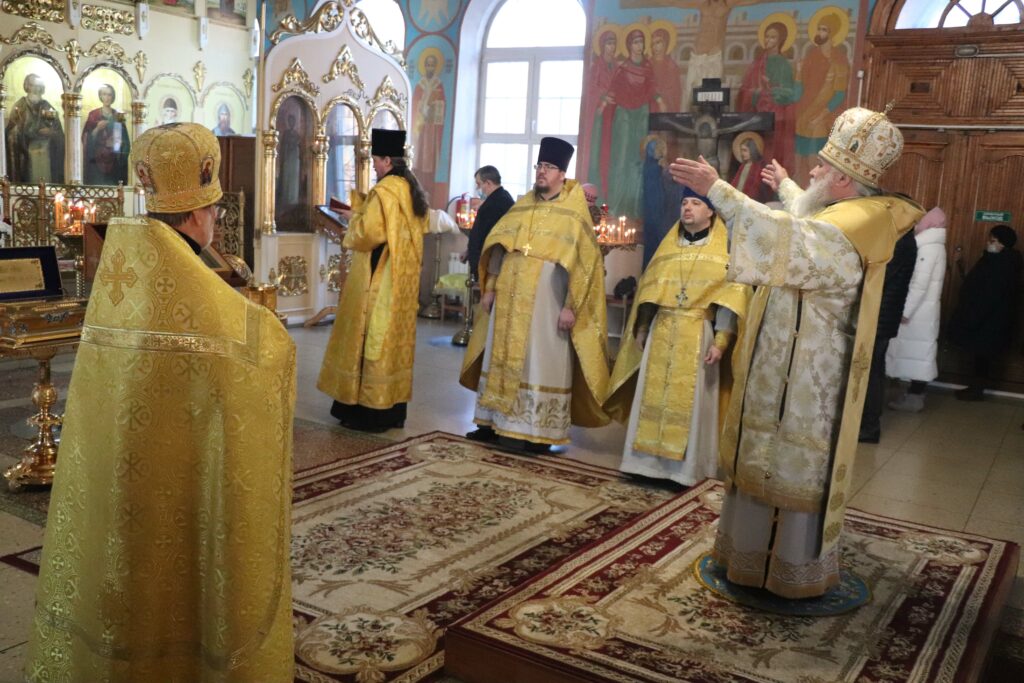 Его Преосвященству сослужили протоиерей Сергий Корчагин, протоиерей Александр Аухимик, протоиерей Виссарион Илларионов, иерей Александр Липатов и диакон Христофор (Ткаченко). Пел хор под управлением Ольги Корчагиной.