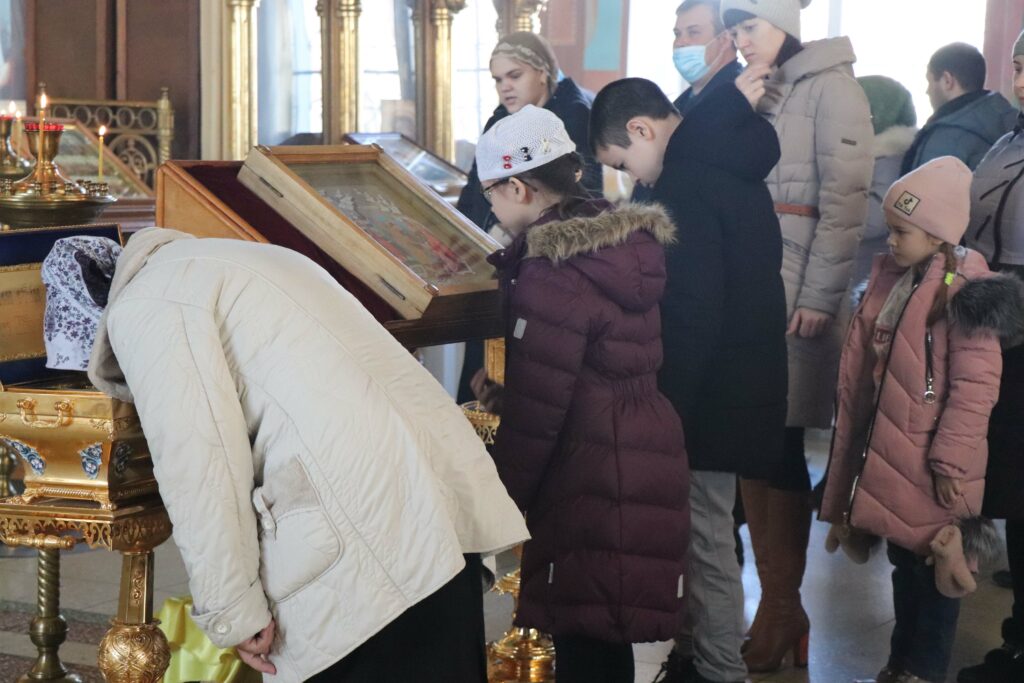 Бузулук. 7 марта 2021 года, Неделя мясопустная, о Страшном Суде, обретение мощей мучеников, иже во Евгении (395-423); память мчч. Маврикия и 70-ти воинов: Фотина, Феодора, Филиппа и иных (ок. 305), прпп. Фалассия, Лимния и Варадата, пустынников Сирийских (V); прп. Афанасия исп. (821), епископ Бузулукский и Сорочинский Алексий совершил Божественную литургию и накануне всенощное бдение в Никольском кафедральном соборе.