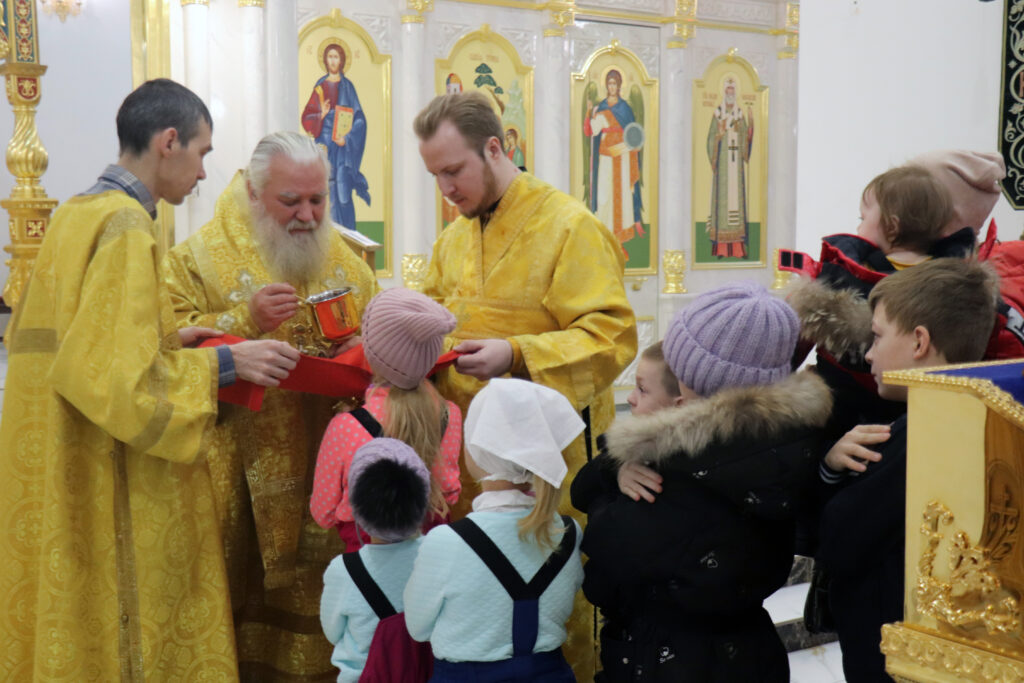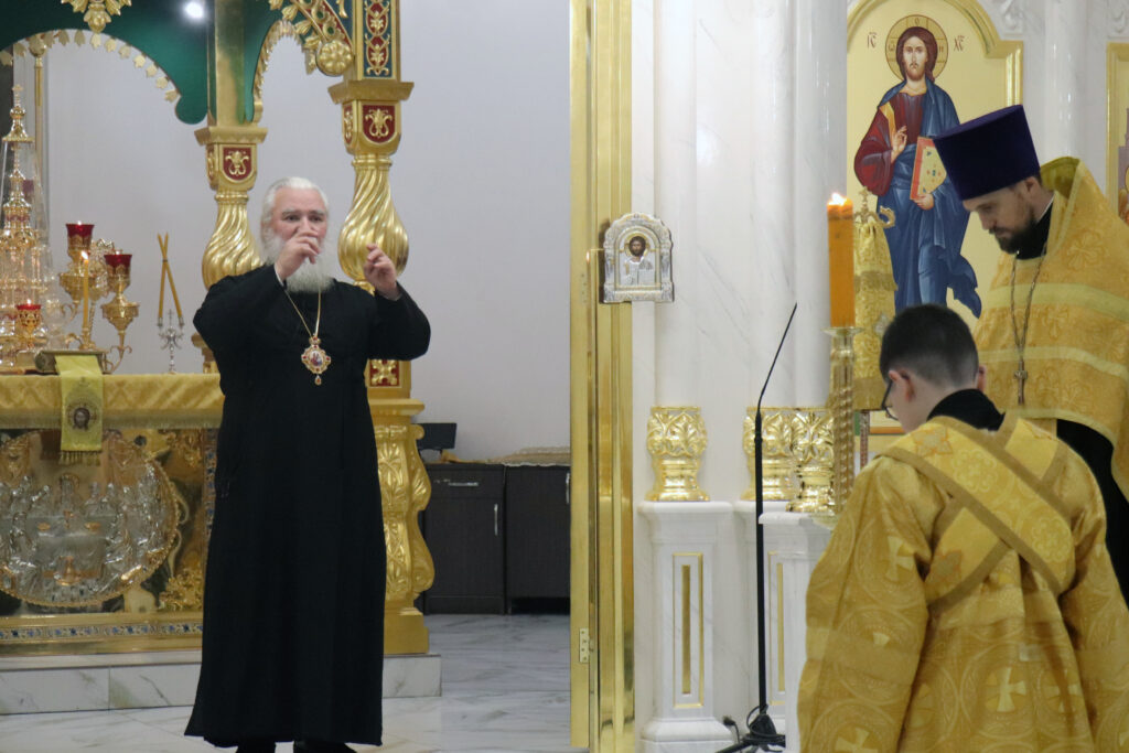 После чтения Евангелия Владыка Алексий обратился к прихожанам с проповедью, в которой поздравил с Неделей святых Праотцев, то есть тех, кто послужили нашему спасению, послужили пришествию в мир Сына Божиего, Господа нашего Иисуса Христа.