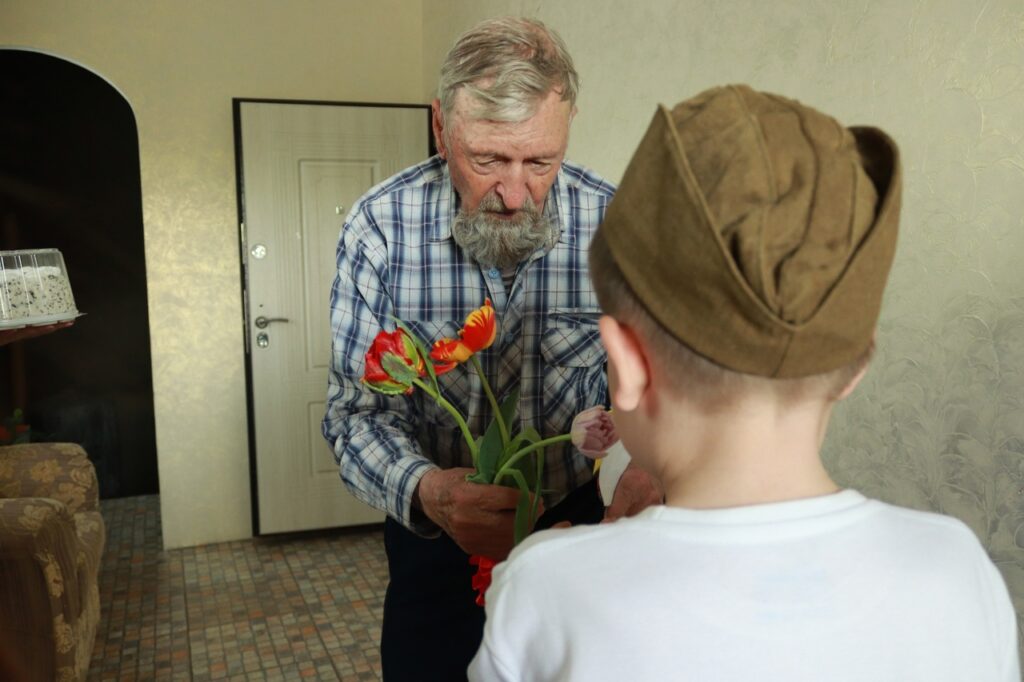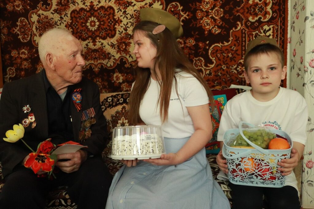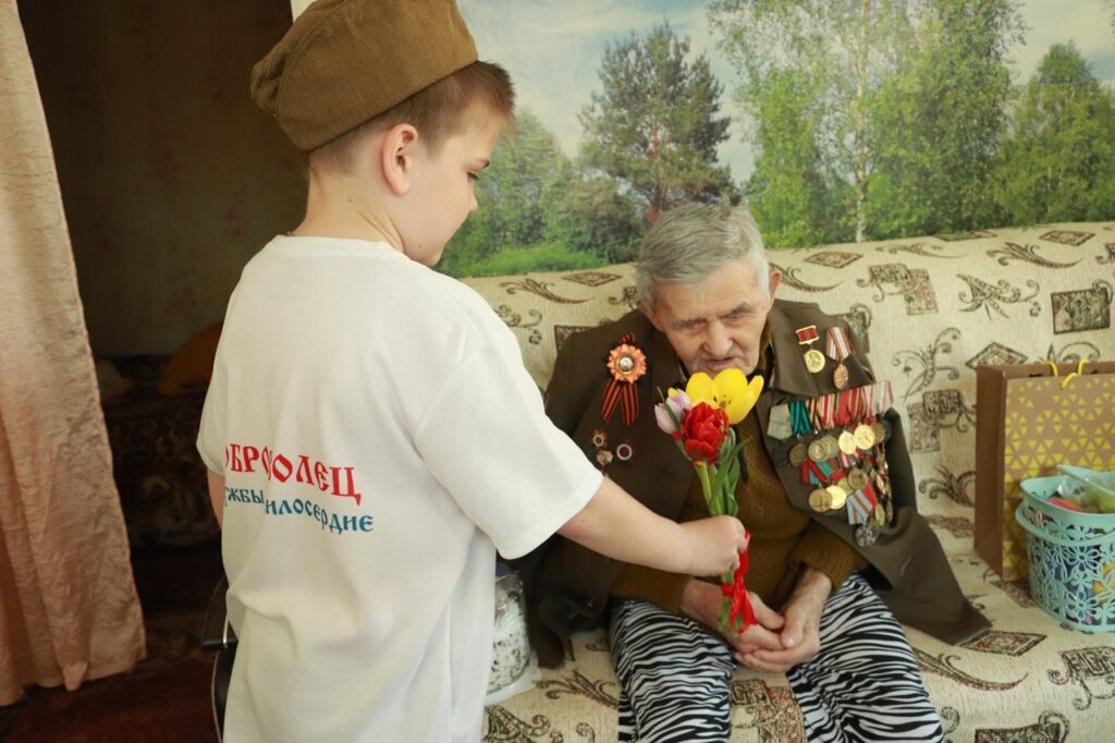 Поэтому юные волонтеры и ученики добровольческой службы «Милосердие» решили поздравить ветеранов, приехав к каждому с цветами и нехитрыми подарками прямо домой. На глазах пожилых людей слезы радости – их помнят, чтут, благодарят.