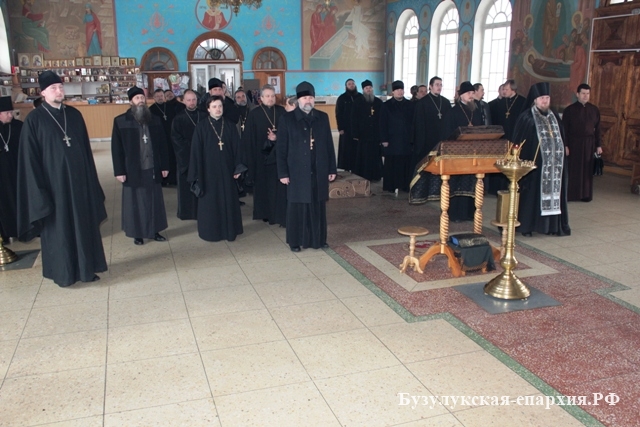 Бузулук. 26 марта 2013 года в Никольском кафедральном соборе г. Бузулука состоялось Епархиальное собрание и исповедь духовенства. Собрание, на которое прибыли благочинные, настоятели и клирики храмов провел Преосвященный Алексий, епископ Бузулукский и Сорочинский.