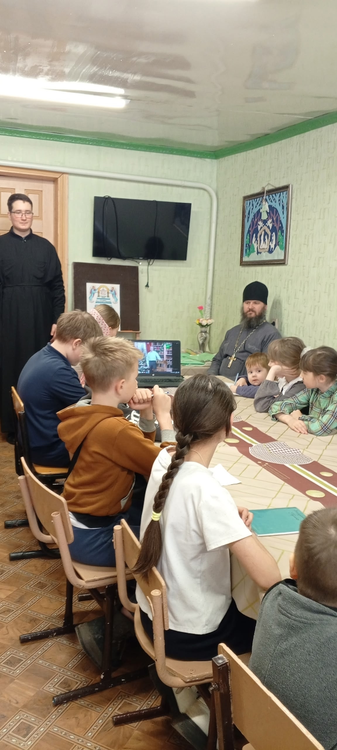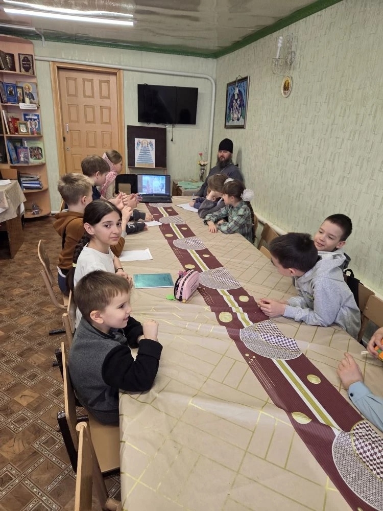 После уроков педагог Анастасия Анисимова провела репетицию песен к праздничному концерту. Настоятель храма иерей Алексий Анисимов, присутствовавший на уроке, призвал ребят внимательнее следить за своим поведением, стараться избегать ссор и конфликтов, чтобы встретить Праздников Праздник с чистой душой и светлой радостью.