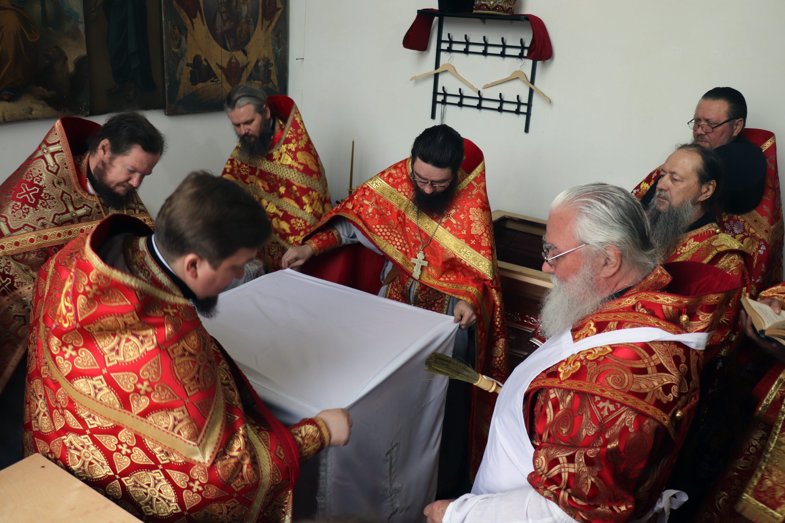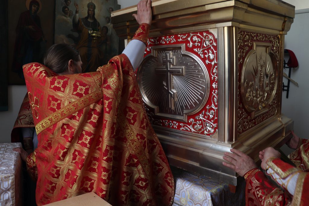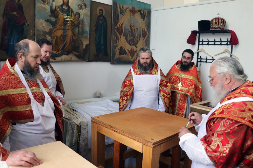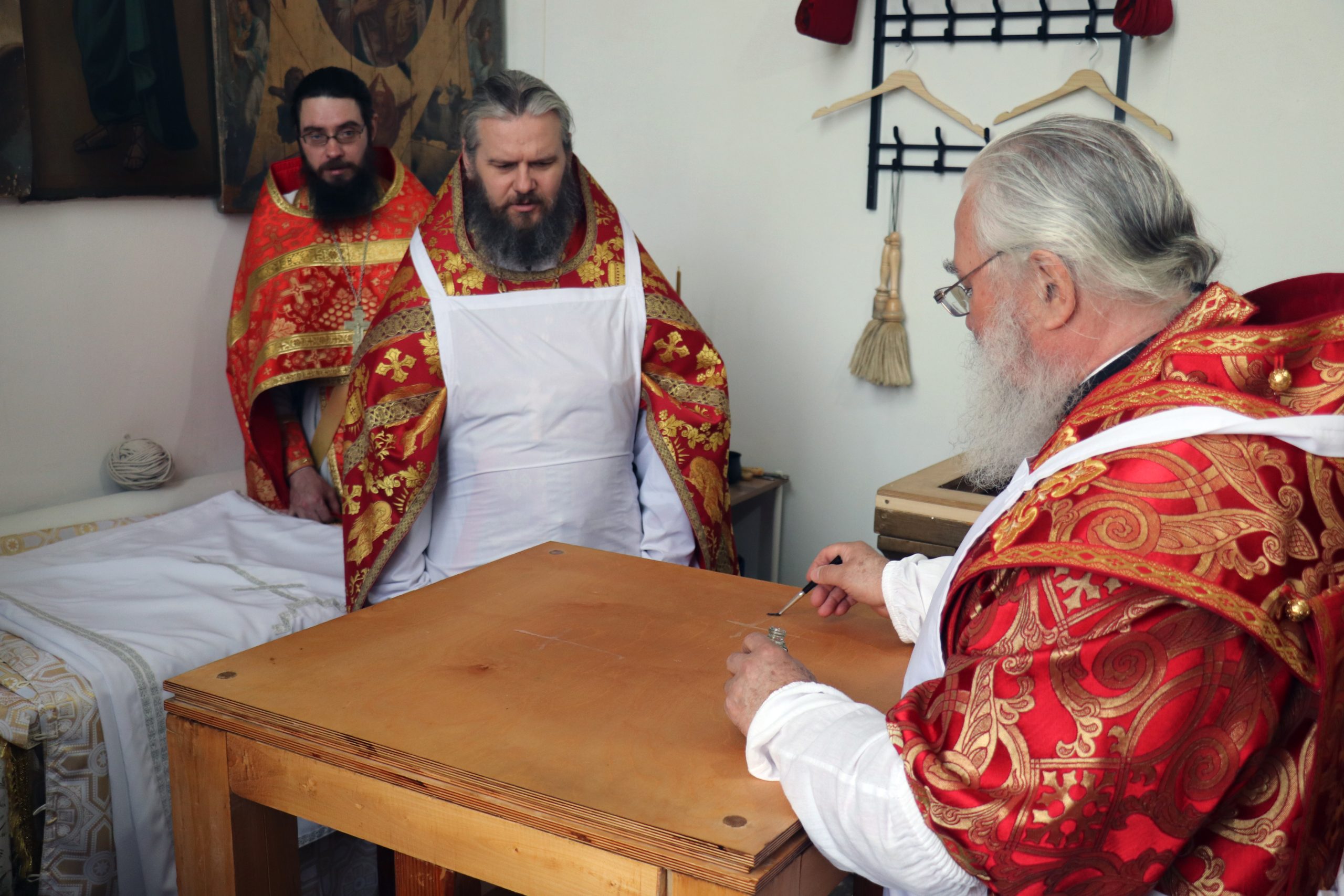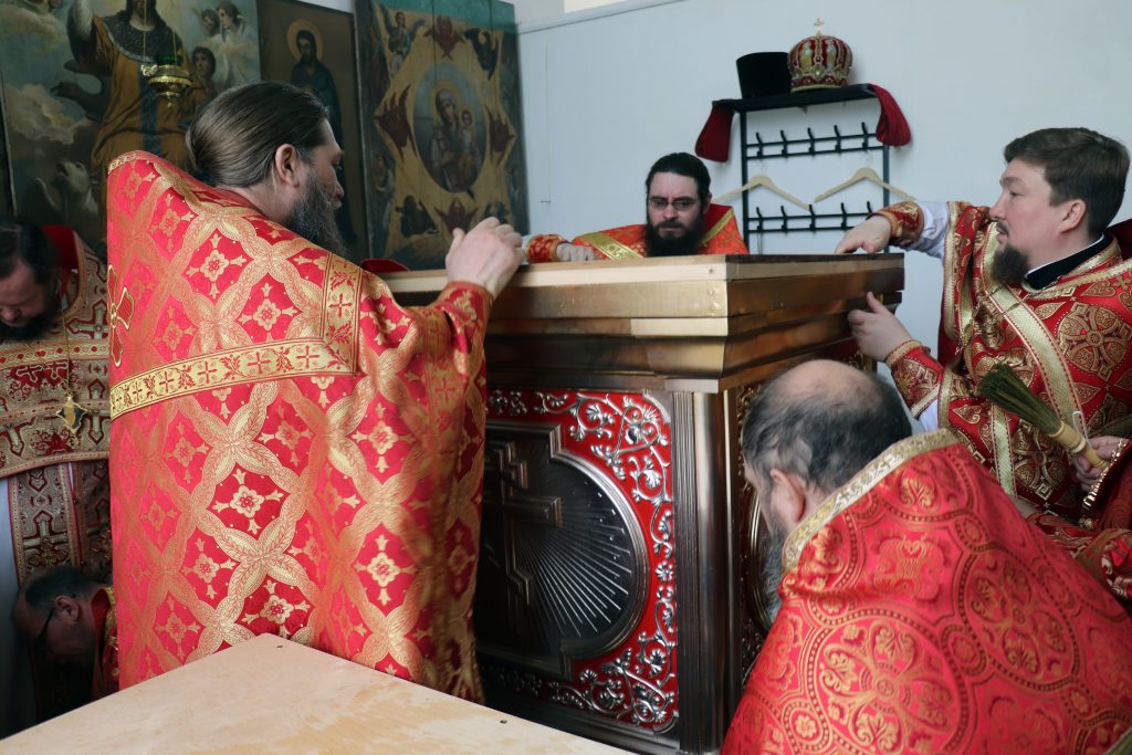 После чина освящения была совершена первая Божественная литургия в новоосвященном пределе преподобного Герасима Иорданского.