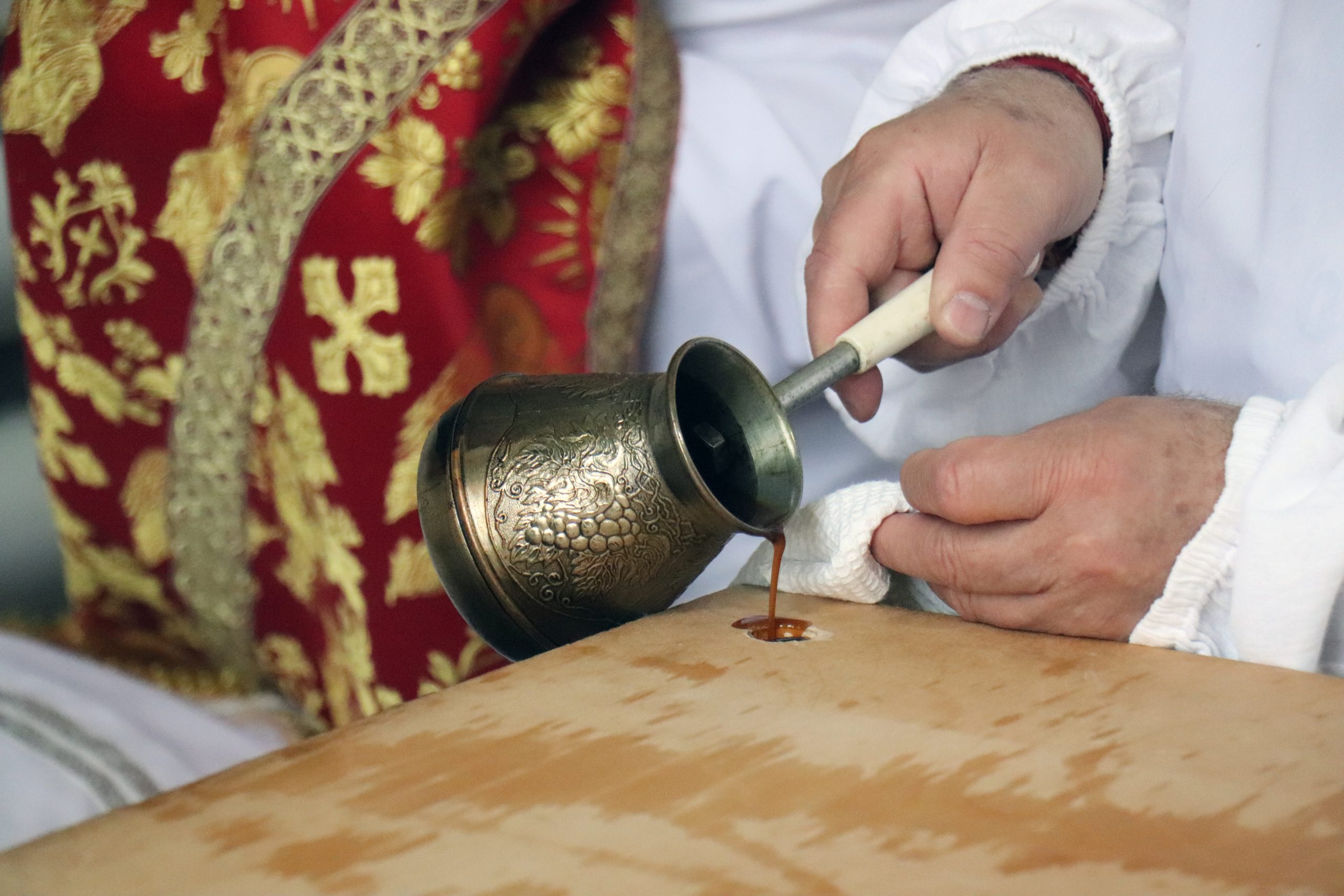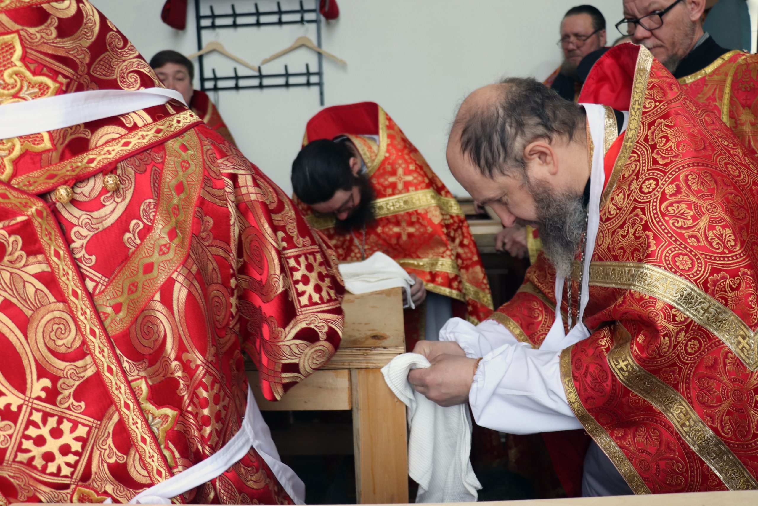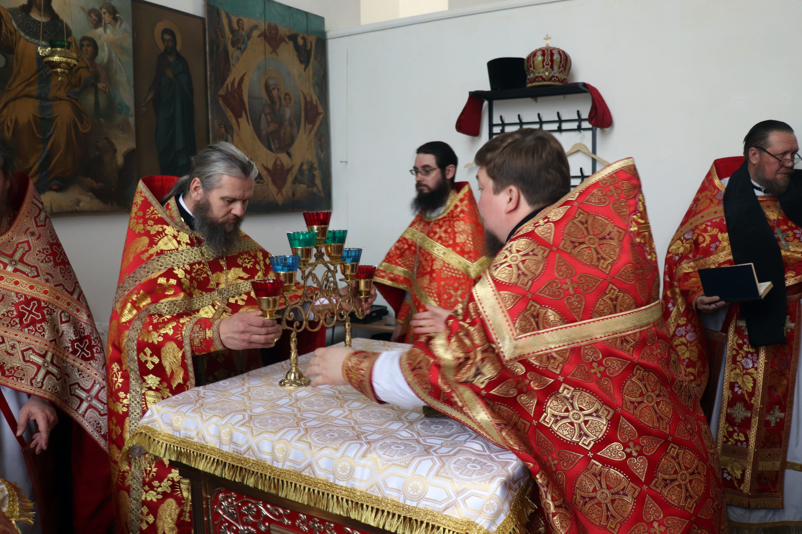После чина освящения была совершена первая Божественная литургия в новоосвященном пределе преподобного Герасима Иорданского.