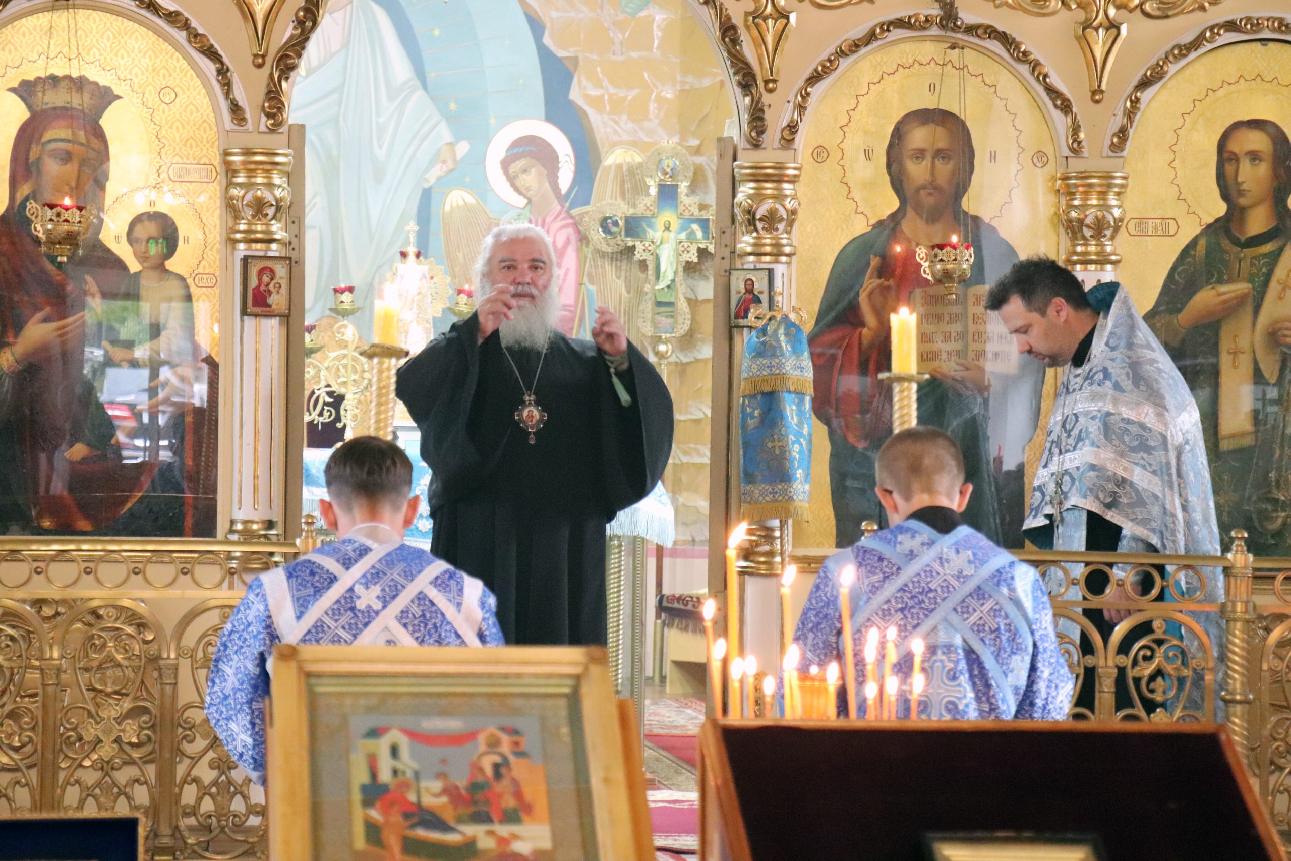 После чтения Евангелия Владыка Алексий обратился с проповедью к прихожанам: «Во имя Отца и Сына и Святого Духа. Сегодняшний воскресный день именуется Неделей пред Воздвижением, ибо на неделе праздник Воздвижения Честного Животворящего Креста Христова.