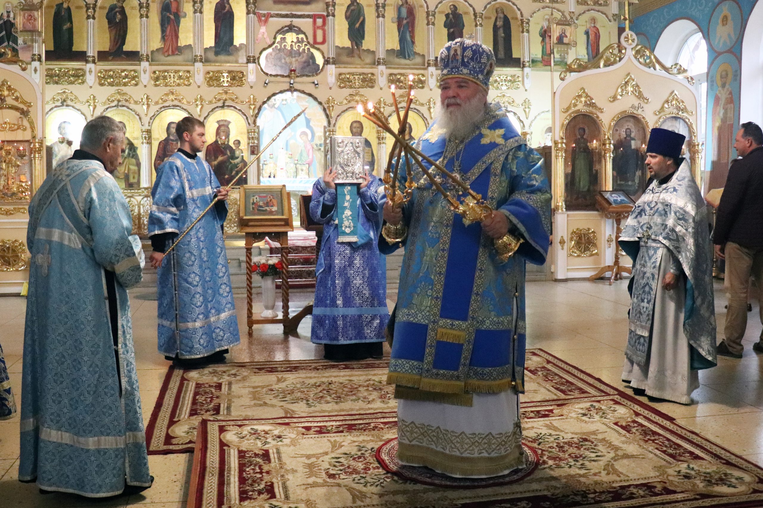 Бузулук. 25 сентября 2022 года в Неделю 15-ю по Пятидесятнице, пред Воздвижением, Отдание праздника Рождества Пресвятой Богородицы, епископ Бузулукский и Сорочинский Алексий совершил Божественную литургию и накануне всенощное бдение в Никольском кафедральном соборе.