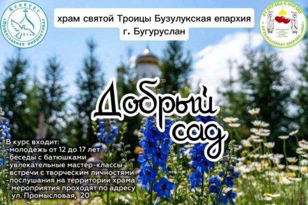 Бугуруслан. По благословению Его Преосвященства, Преосвященнейшего епископа Бузулукского и Сорочинского Алексия при Свято-Троицком соборе г. Бугуруслана реализуется новый летний православный молодежный проект под названием «Добрый сад». Цель проекта – создание пространства, в котором каждый подросток в возрасте от 12 до 17 лет сможет почувствовать свою значимость и получить поддержку в православном обществе. В программу включены: […]