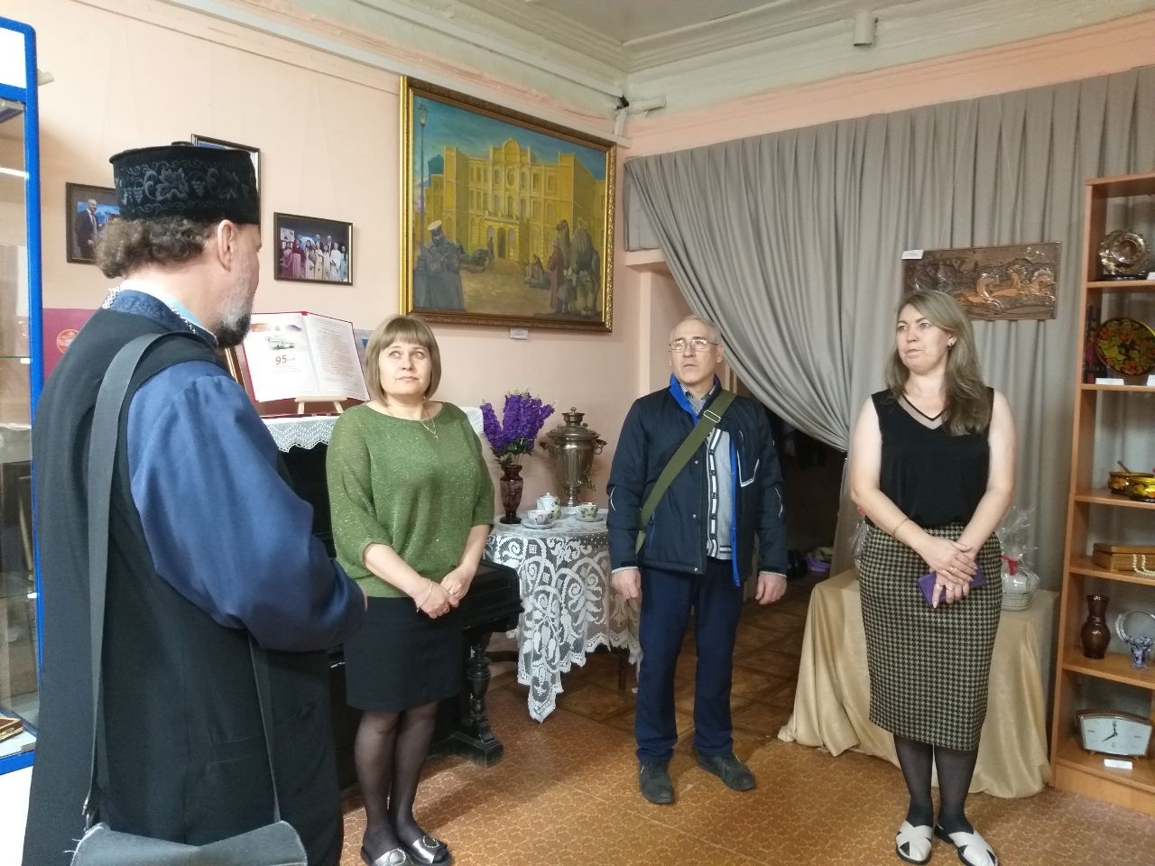 Далее паломники посетили территорию и здание бывшего духовного училища, попечителем которого являлся священномученик Константин, в помещении бывшего храма архистратига Михаила игумен Марк с группой вознесли свои молитвы о возрождении святыни. Осмотрев территорию и игуменский корпус бывшего Бугурусланского Покровского женского монастыря, гости в молельной комнате пропели тропарь, кондак и величание Покровительнице нашего града Пресвятой Богородице.