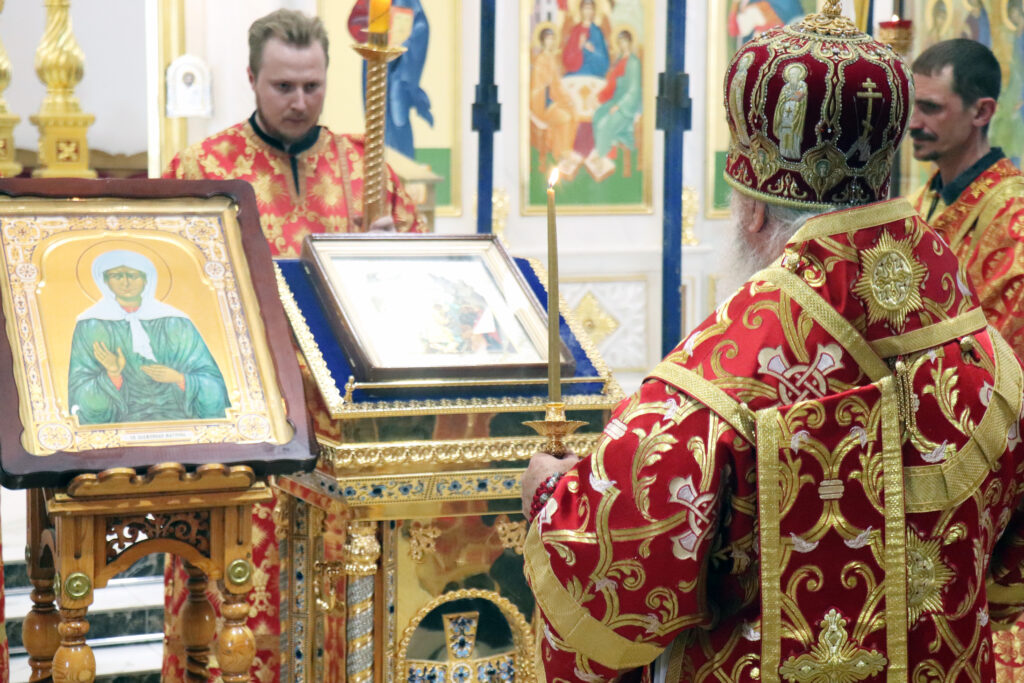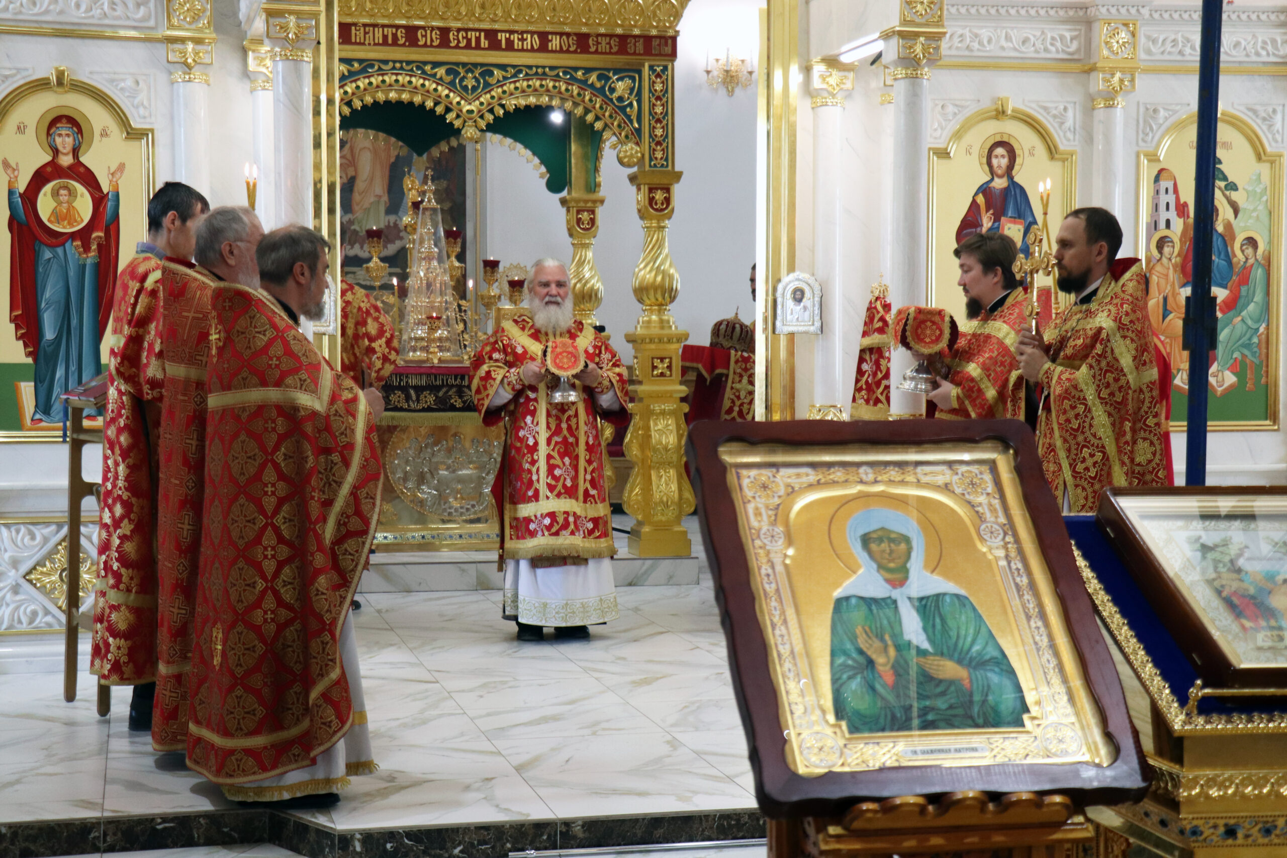 После Литургии и молебна в четь ныне прославляемой блаженной Матроны Московской, Владыка Алексий обратился к прихожанам с проповедью, в которой подробно остановился на житие и духовном подвиге блаженной Матроны.