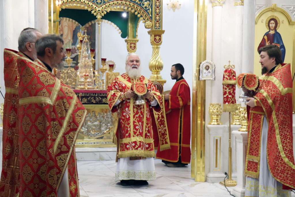 Его Преосвященству сослужили: секретарь Бузулукской епархии иерей Дионисий Горбунов, архимандрит Ефрем (Матынцев), иерей Анатолий Марченков и диакон Иоанн Шумилин.