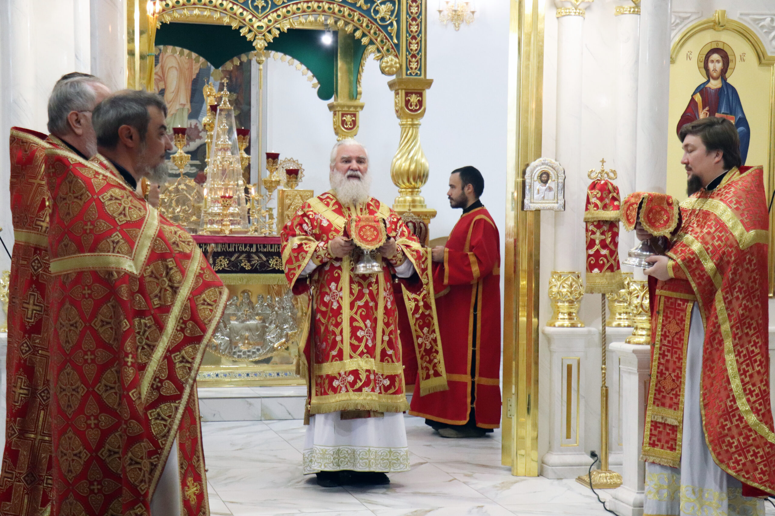 После чтения Евангелия Владыка Алексий обратился к прихожанам с проповедью о житие выдающегося церковного деятеля, богослова, ученого, писателя, святителя Николая Сербского.