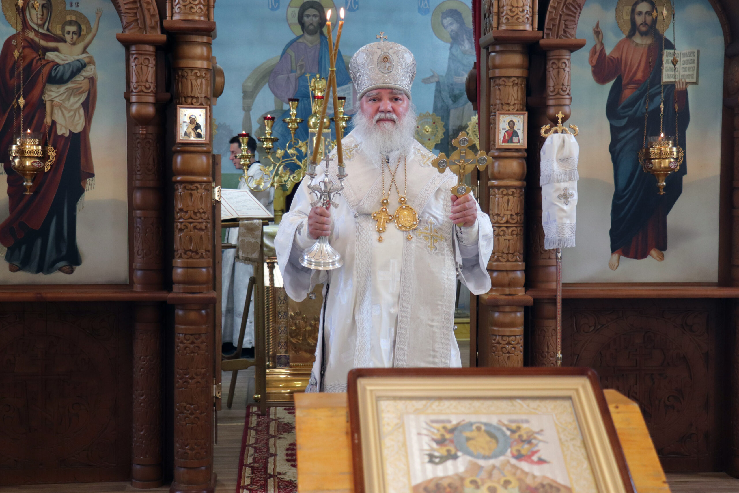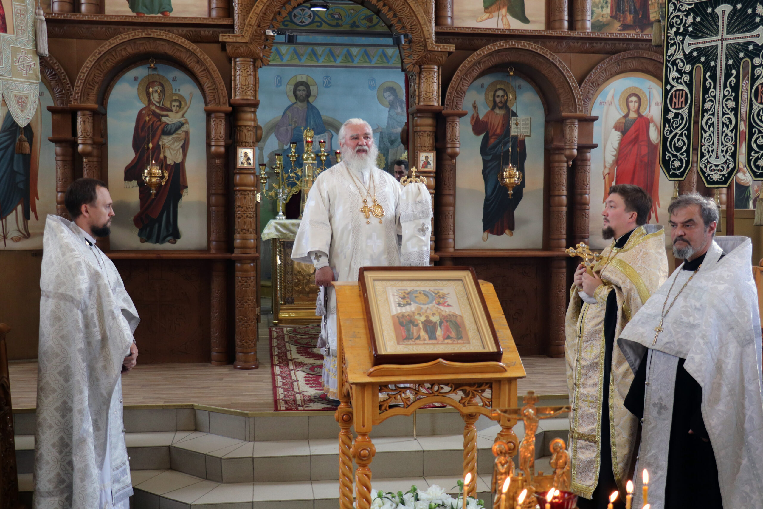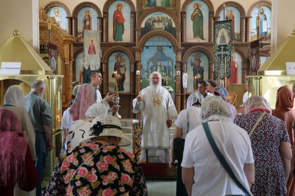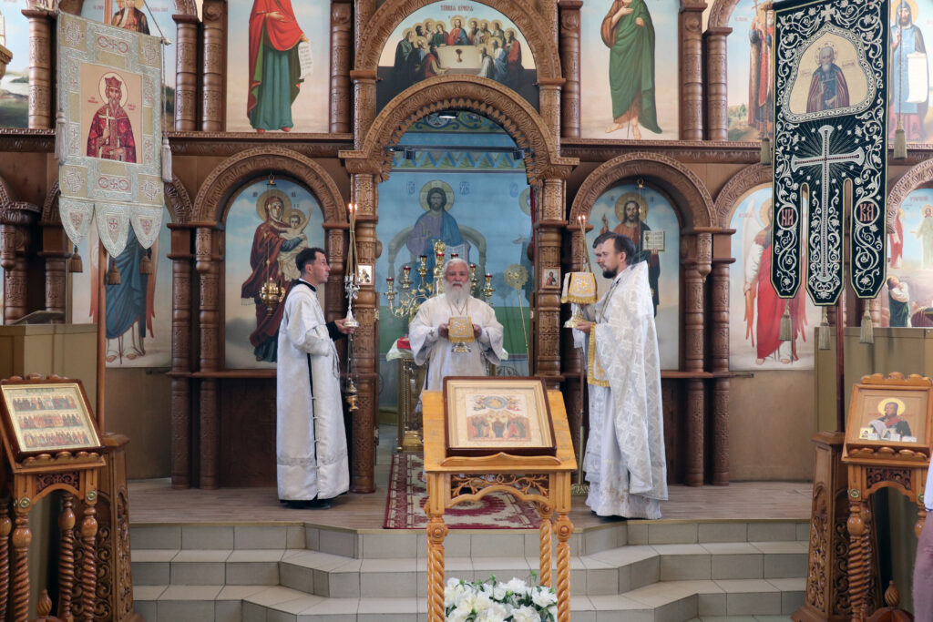 После Литургии и панихиды о всех почивших от века православных христианах Владыка Алексий обратился к прихожанам с проповедью, поздравив всех с попразднством Вознесения Господня, субботним днем и памятью святых отцов семи Вселенских Соборов.