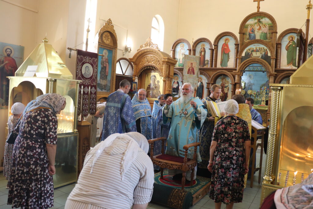 Бузулук. 10 августа 2025 года, вечером в Неделю 9-ю по Пятидесятнице, епископ Бузулукский и Сорочинский Алексий совершил вечернее богослужение с Параклисисом Божией Матери в Преображенском храме Свято-Троицкого кафедрального собора.