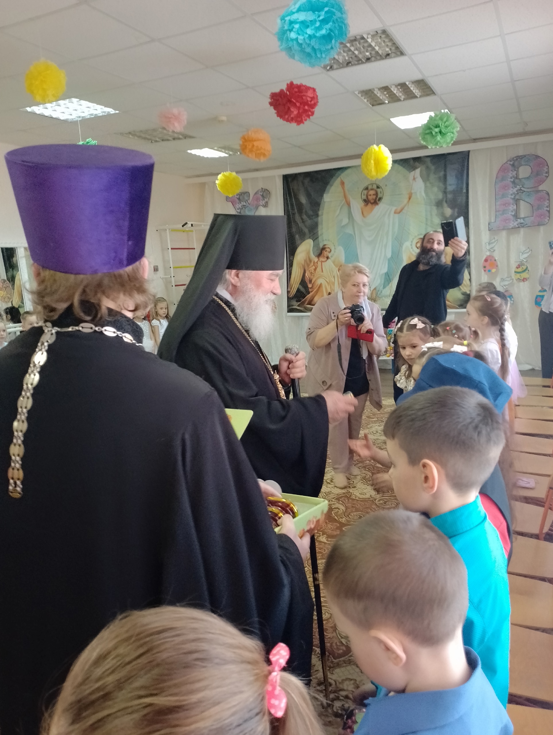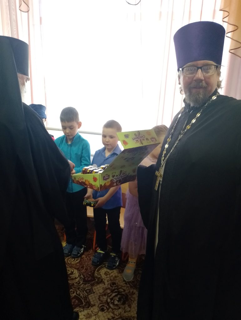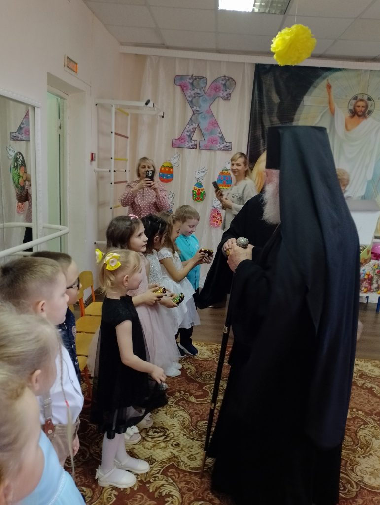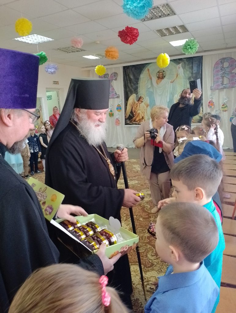 В завершение праздника Владыку Алексий поздравил ребят с Пасхой Христовой и раздал им сладкие подарки.