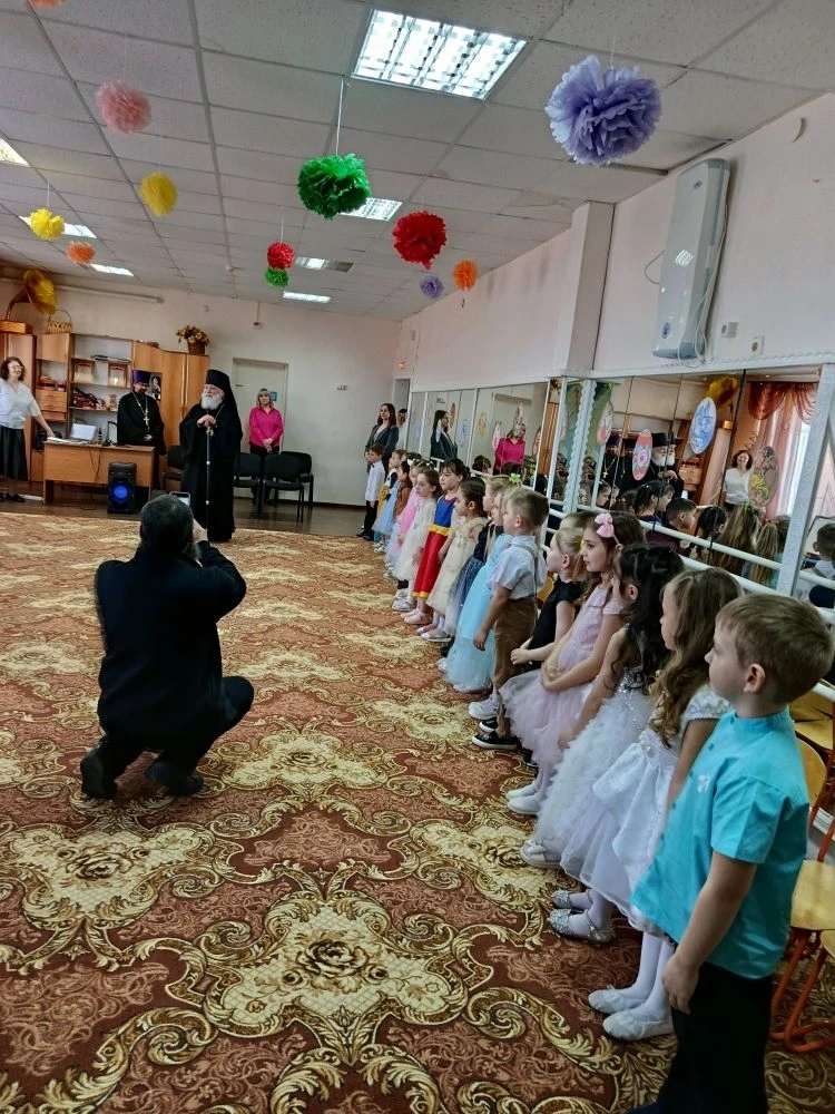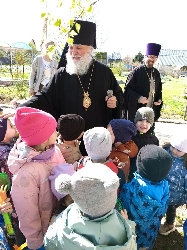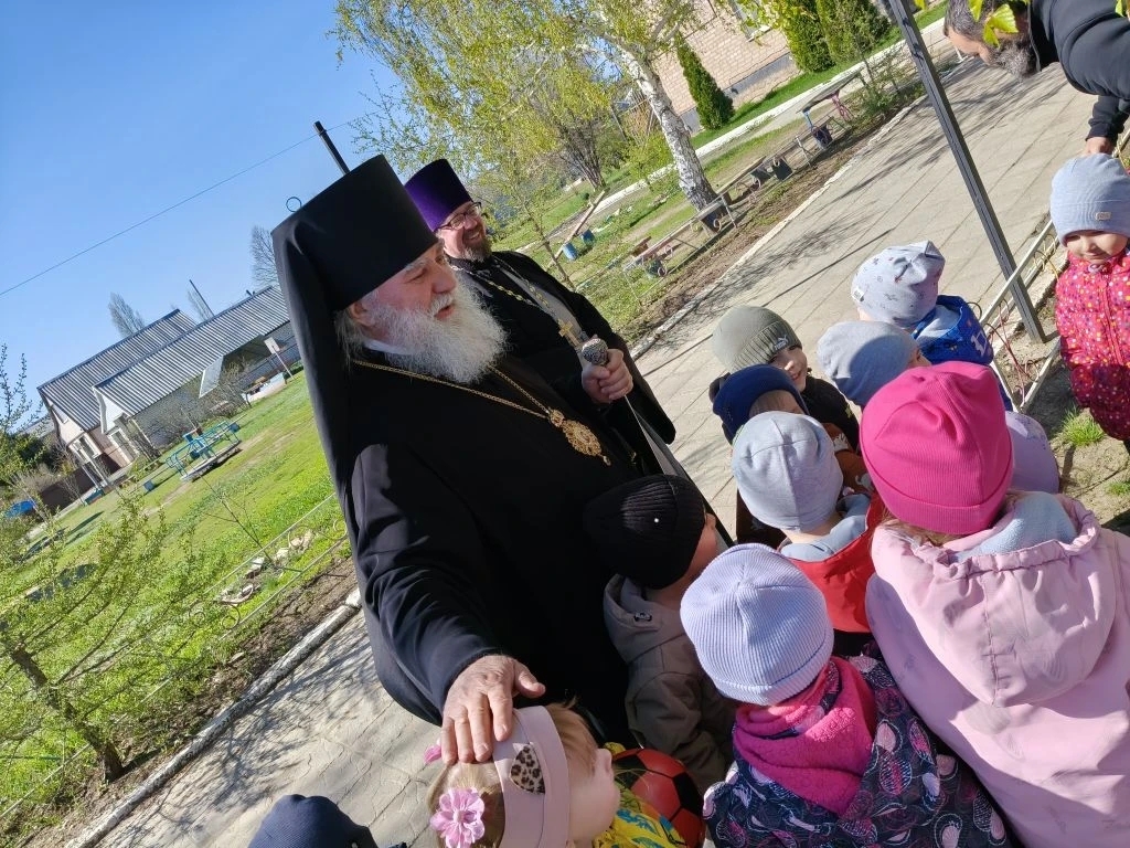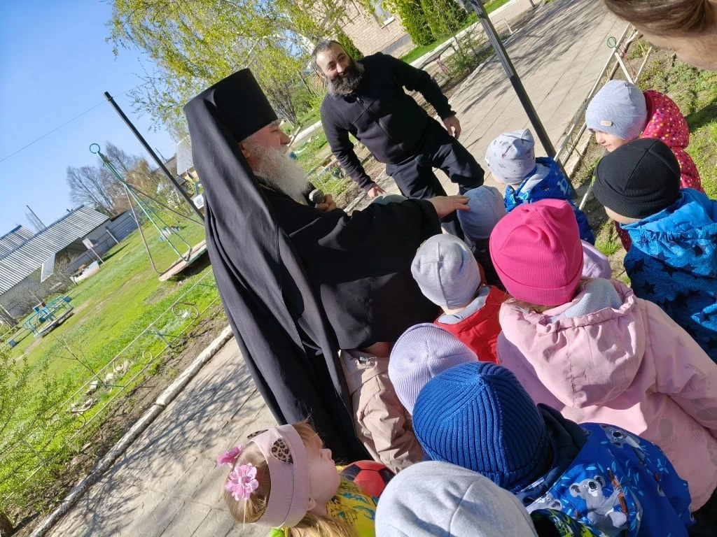 Ташла. 17 апреля 2026 года епископ Бузулукский и Сорочинский Алексий и благочинный Ташлинского округа протоиерей Сергий Клименко посетили Пасхальный утренник в МБДОУ ДС «Дарование».