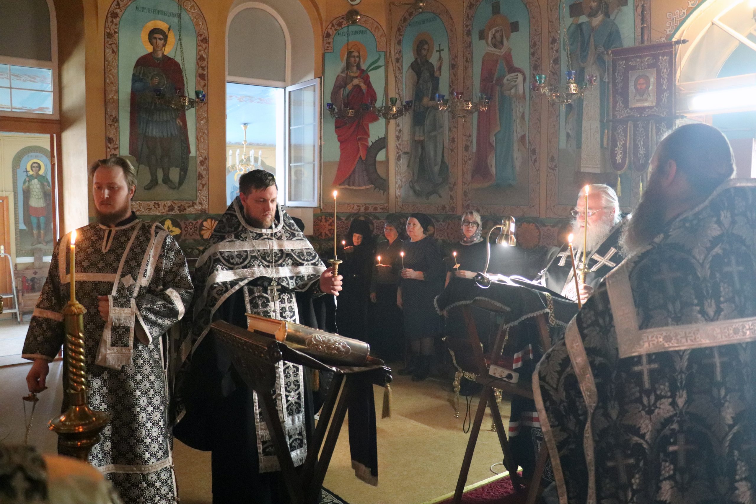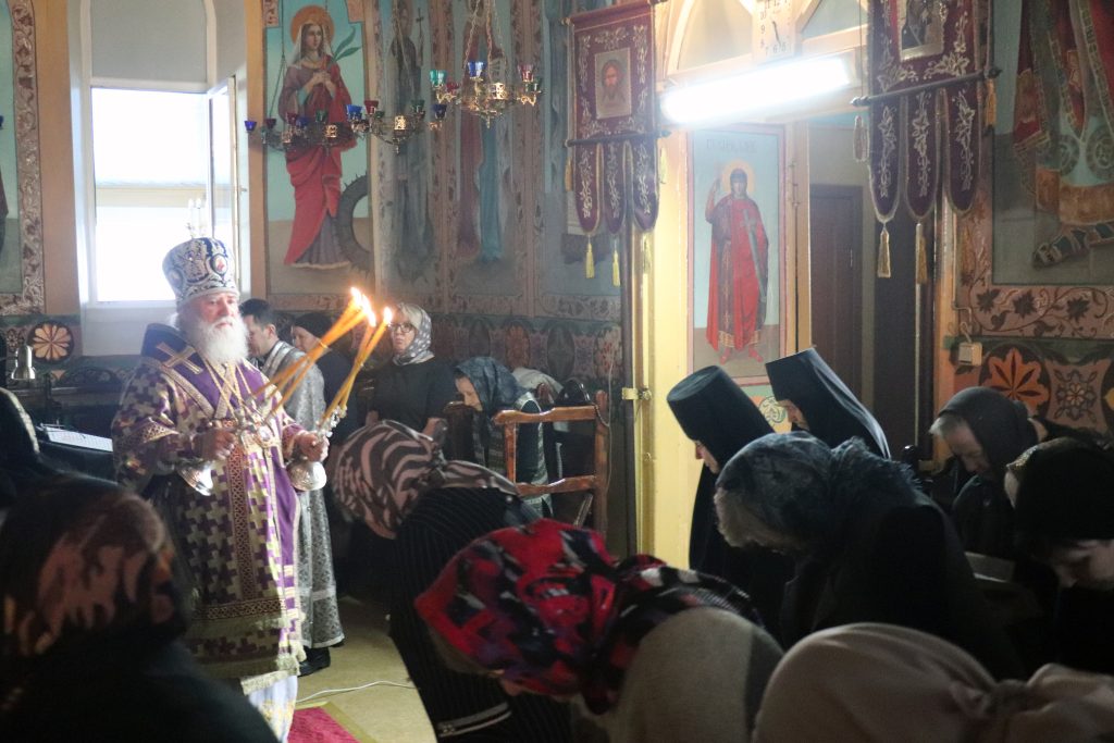 Его Преосвященству сослужили: старший священник монастыря иерей Илья Михальченко, иерей Антоний Сотников и диакон Иоанн Шумилин.