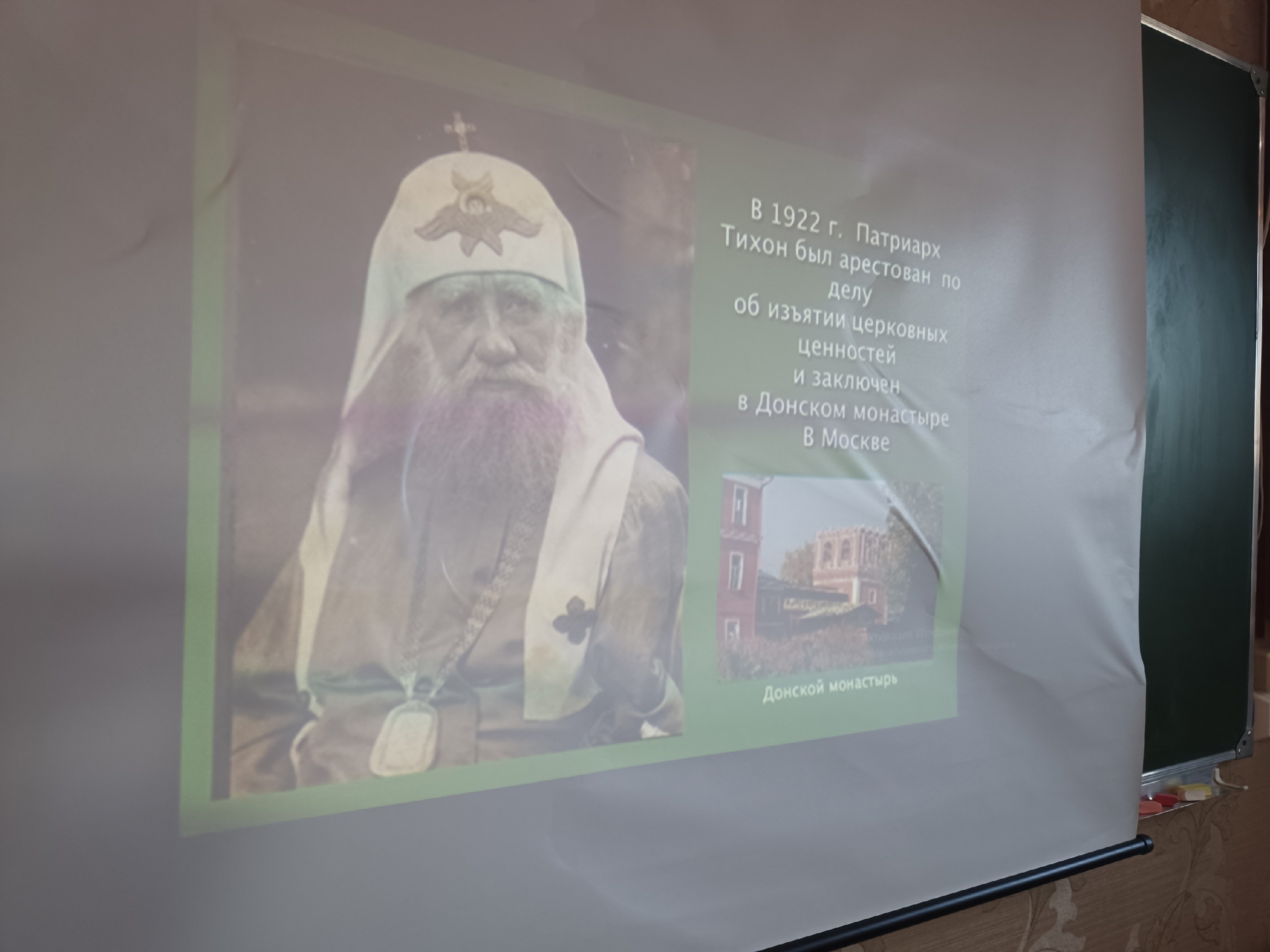 Ташла. 6 апреля 2025 года в воскресной школе имени Веры, Надежды и Любви при храме Святого Пророка Илии состоялся урок, посвященный святителю Тихону, Патриарху Московскому и всея Руси, в связи со столетием его преставления. Учащимся была продемонстрирована презентация «Патриарх Тихон — символ эпохи и образ церковного подвига». Педагог Воскресной школы рассказала детям о жизненном пути Святителя и его подвиге в сохранении Церкви в первые годы гонений.