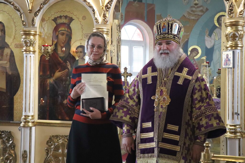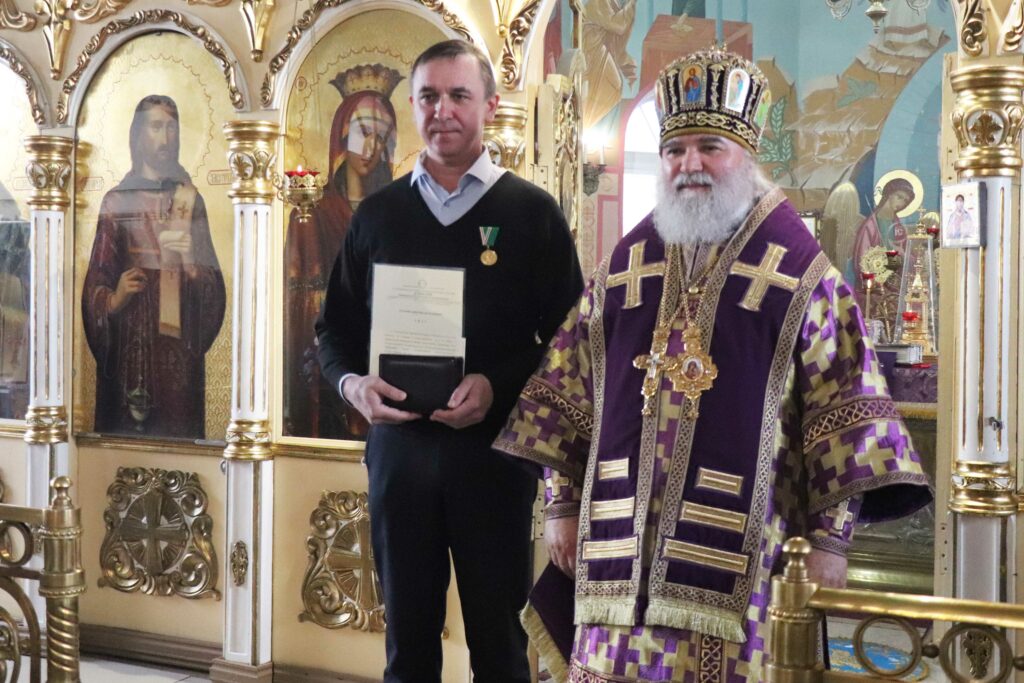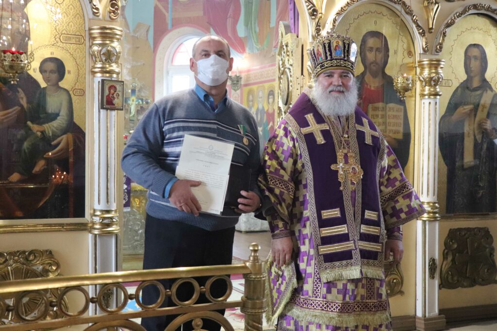 По окончании службы Владыка обратился к прихожанам с архипастырским словом: «Сегодня мы исполняем приятную миссию, мы вручаем медали „Патриаршая благодарность“ нашим врачам за труд по борьбе с коронавирусной инфекцией. Патриарх внимательно следит за тем, как самоотверженно несут свой крест люди, в чьи должностные обязанности вменено стоять на страже нашего с вами здоровья. Эти люди во время пандемии, не щадя сил своих и своего здоровья, были на передовой – сражались с охватившей планету коварной болезнью».