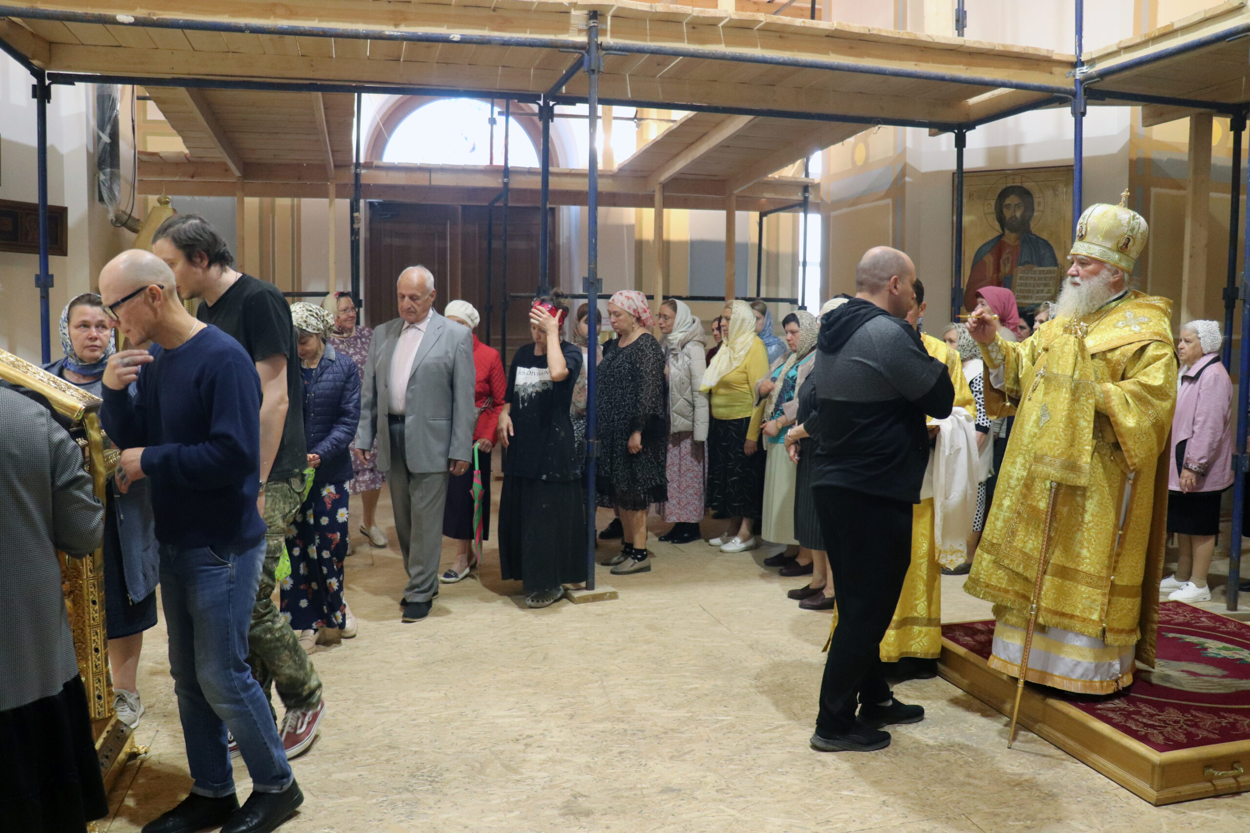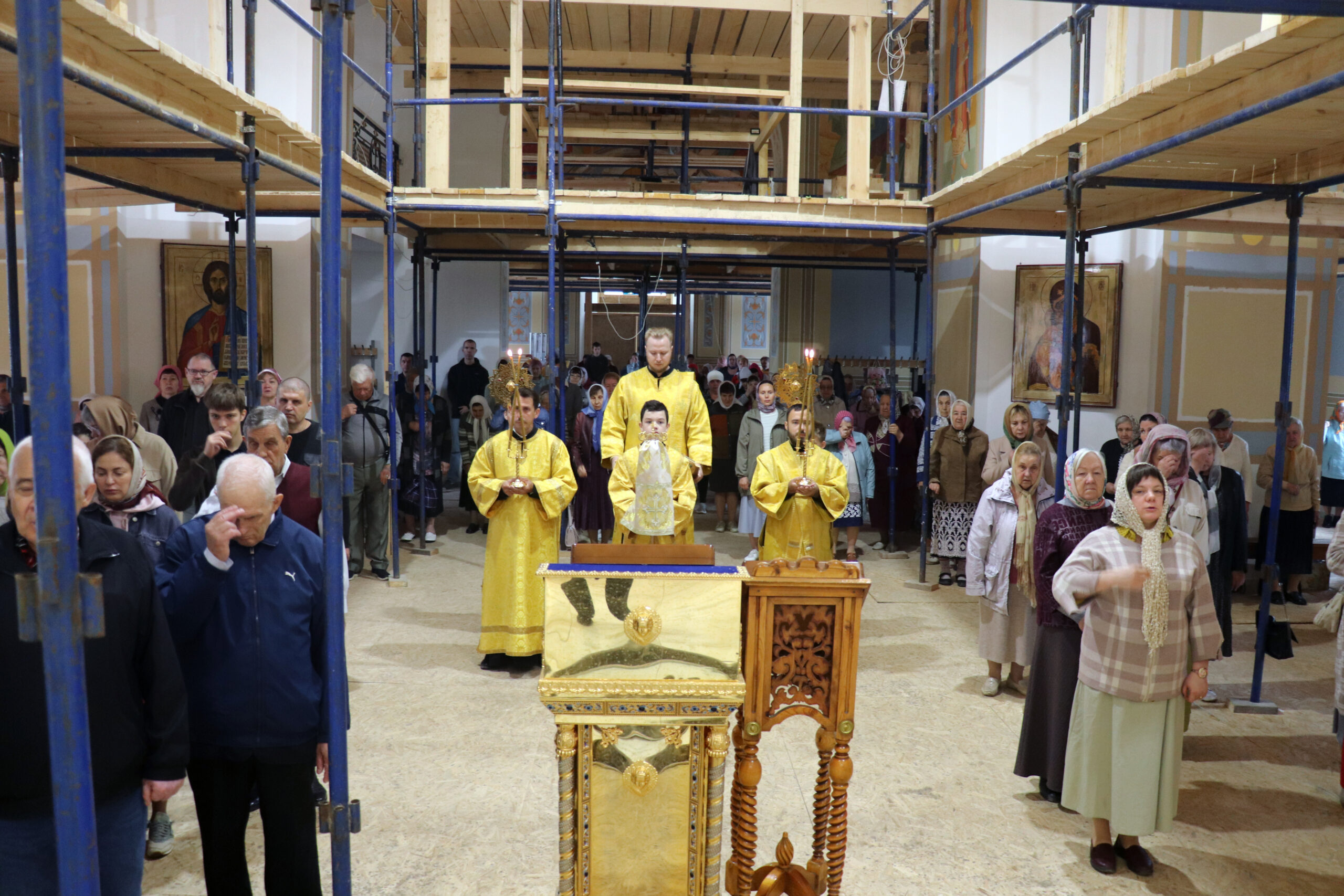 На богослужении присутствовали ктитор Свято-Троицкого кафедрального собора Игорь Сухарев, а также бригада иконописцев под руководством Алексея Михайловича Смирнова-Воскресенского.