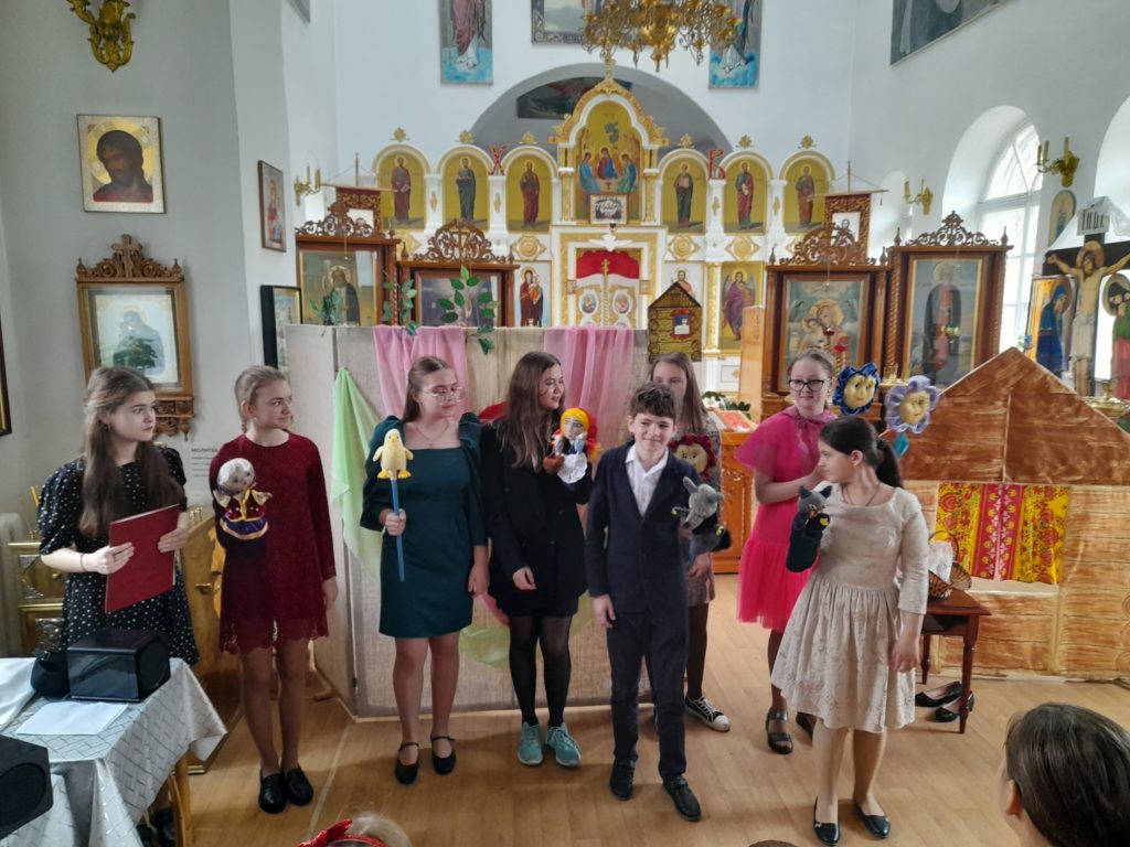 Дети пели песни, рассказывали стихи, выступали в качестве героев театрализованных постановок. К примеру, пасхальная версия сказки “Теремок” рассказала зрителям о том, как животные помогли девочке Насте подготовиться к Пасхе и встретить ее. А главной мыслью кукольного спектакля про Красную Шапочку было понимание того, что доброта – это главная сила в мире.