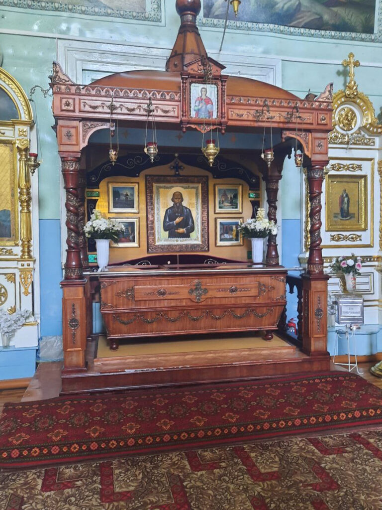 На двух микроавтобусах с пением молитв, поехали на » встречу» с первым святым Самарского края – праведным Петром Чагринским. Храм во имя Архангела Михаила поразил своей красотой! Паломники узнали о его истории в разные периоды. Сотрудница храма рассказала о молитвенных подвигах старца Петра, чьи нетленные мощи почивают в этом дивном храме. Затем, пропев величание праведнику, все приложились к его мощам. Все паломники оставили поминальные записки, приобрели книги, иконки.