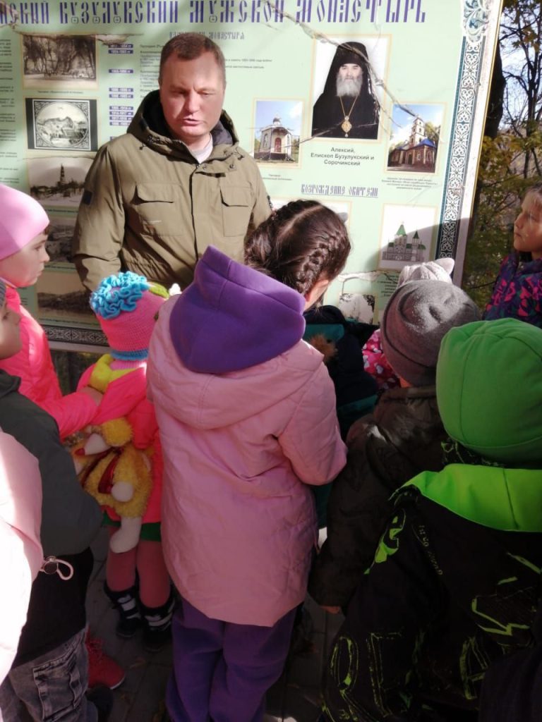На всём пути следования паломников сопровождал гид в лице краеведа Сергея Колычева который не только рассказывал исторические факты об истории г. Бузулука и мужского монастыря, но и провёл историческую реконструкцию в пещерах дав тем самым почувствовать детям как жили и молились подвижники благочестия, которые подвизались в монастыре много лет назад.