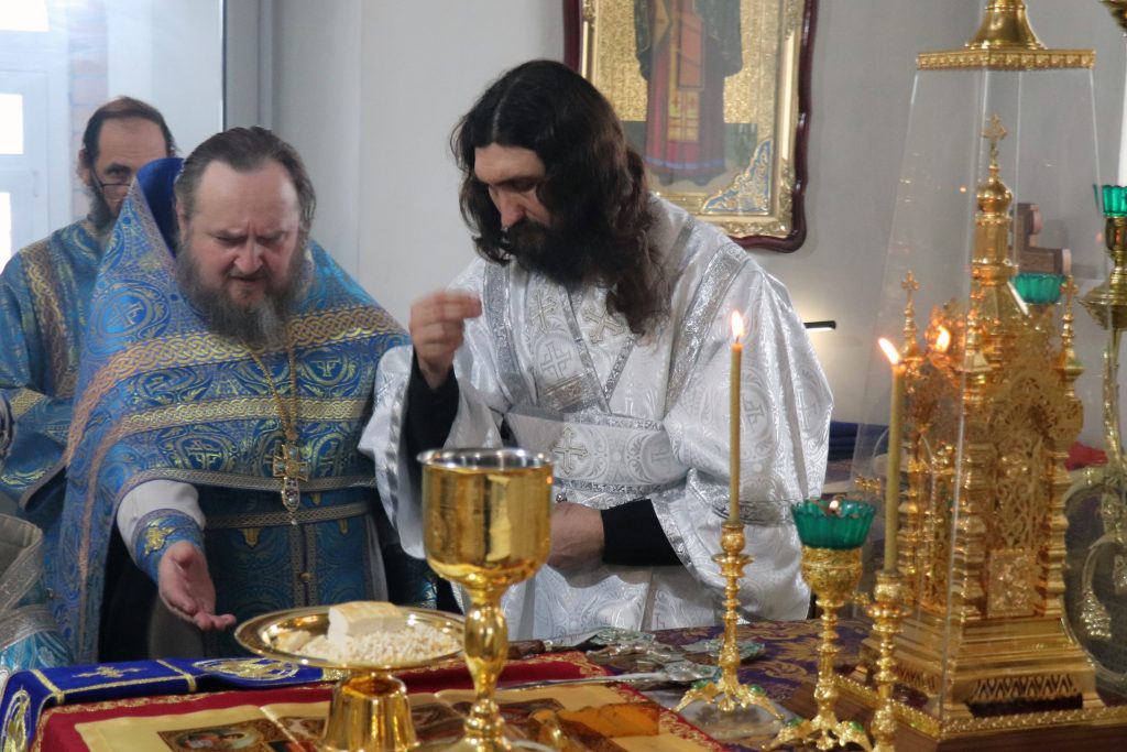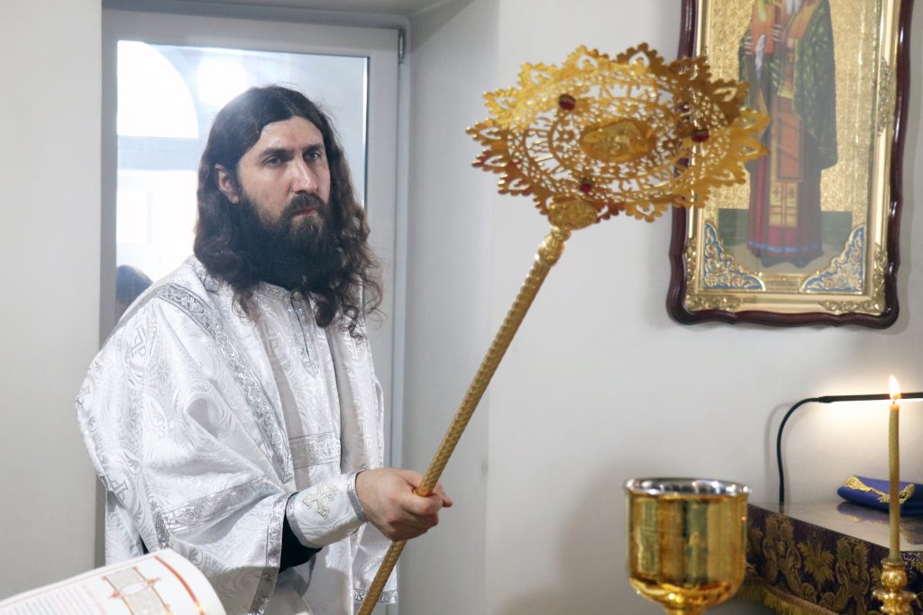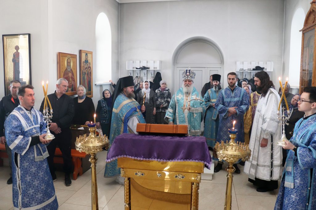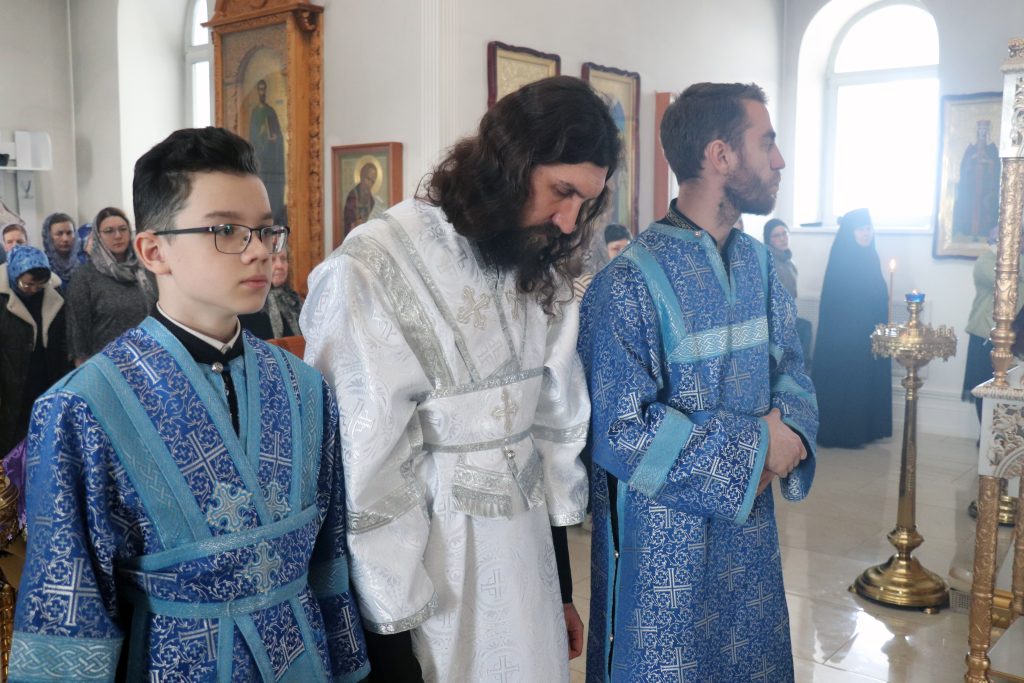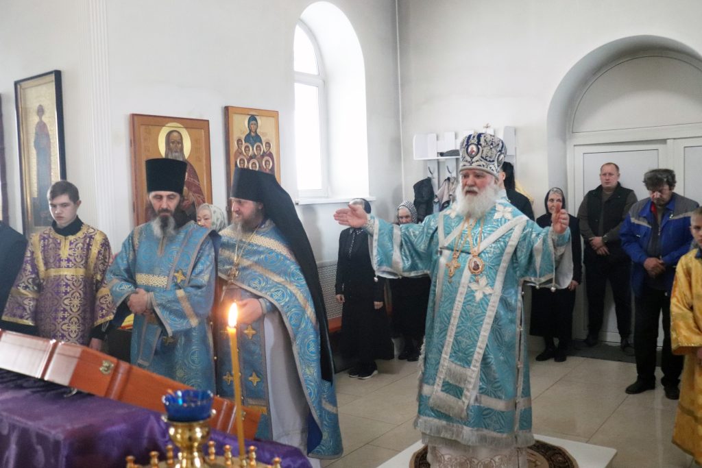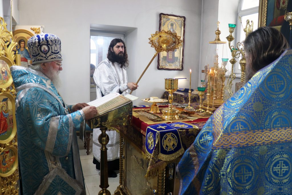 Его Преосвященству сослужили: настоятель монастыря игумен Виталий (Климов) и иеродиакон Власий (Явкин).