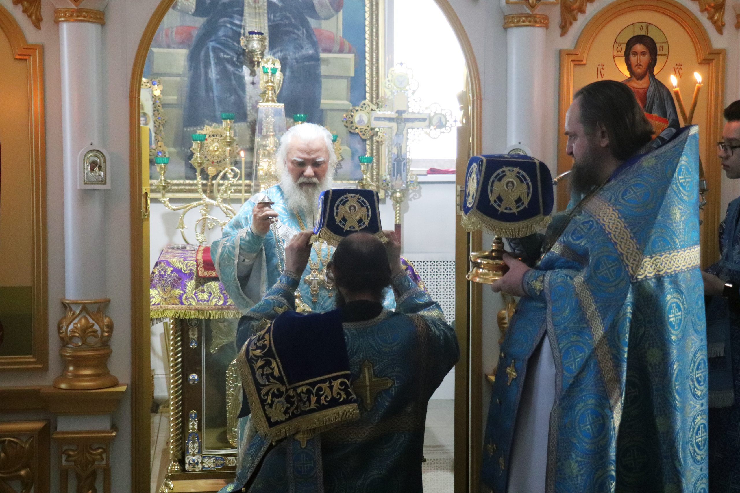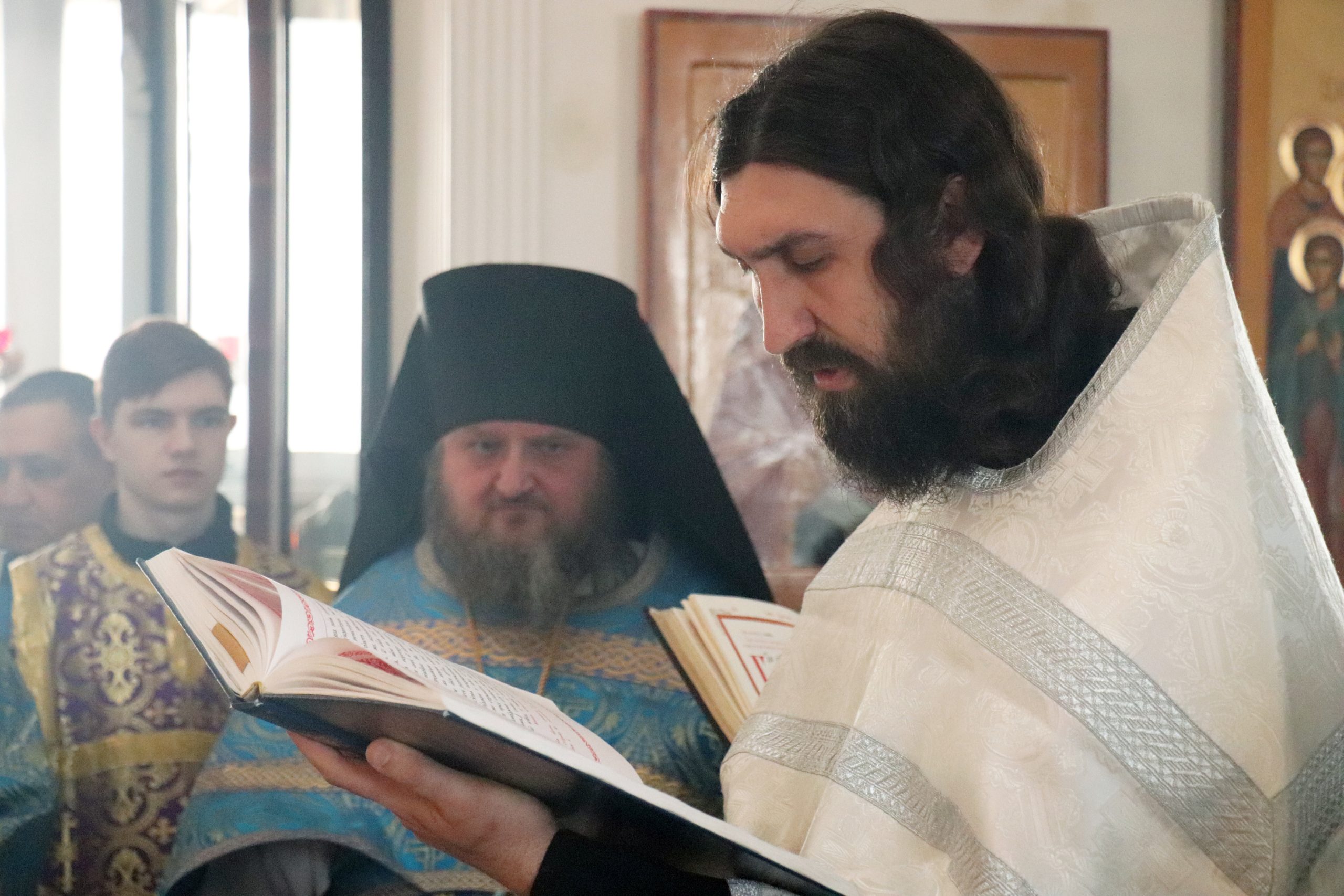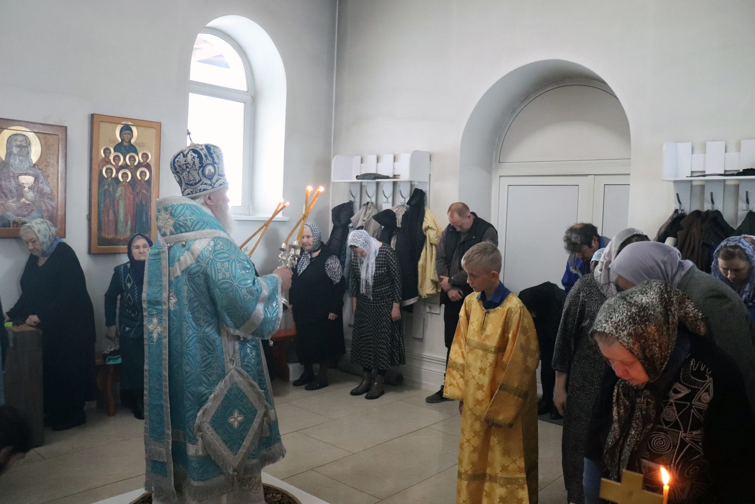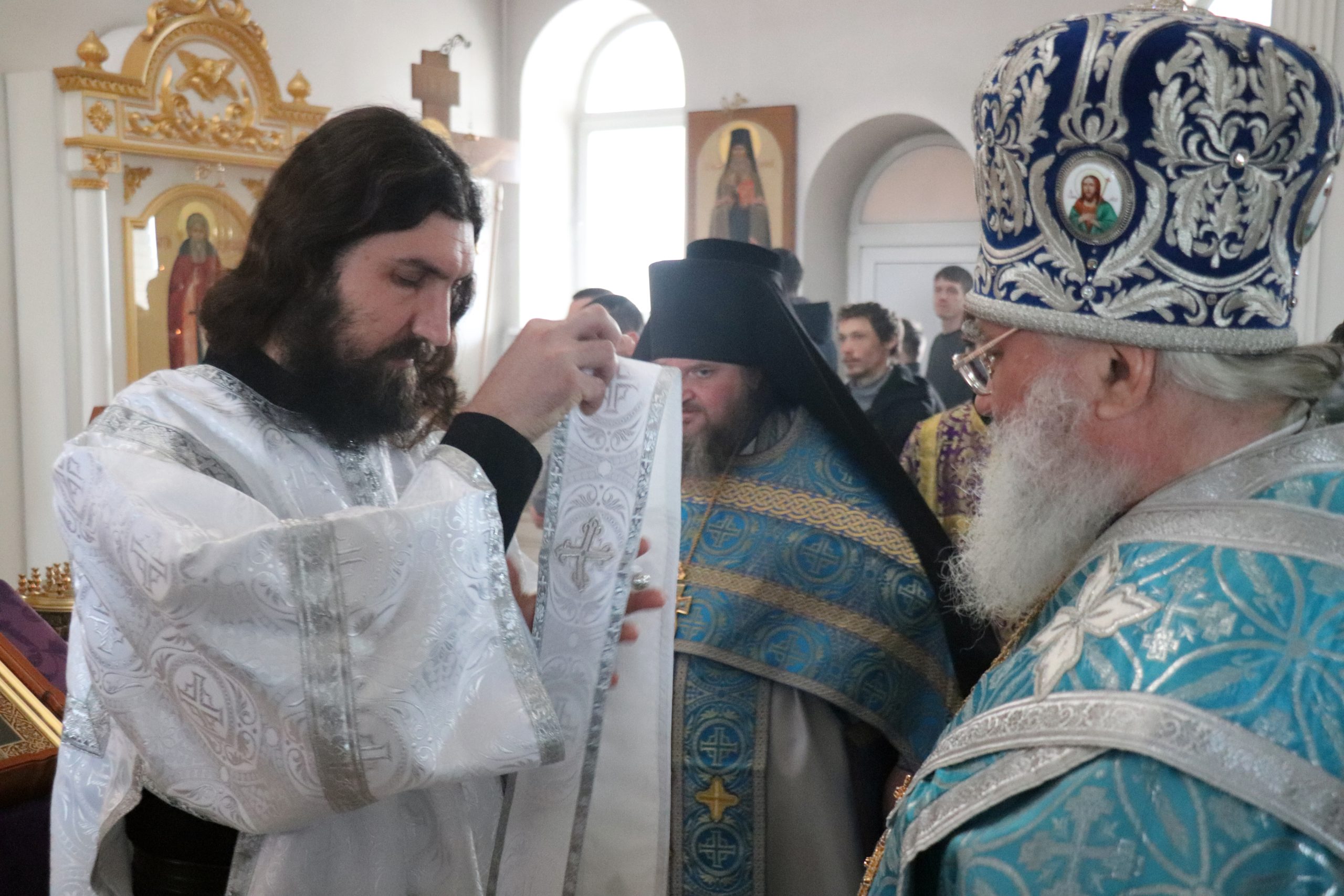 Его Преосвященству сослужили: настоятель монастыря игумен Виталий (Климов) и иеродиакон Власий (Явкин).