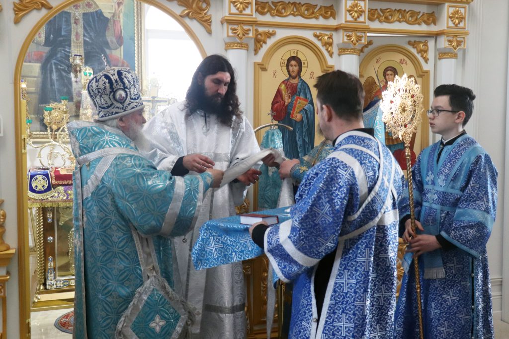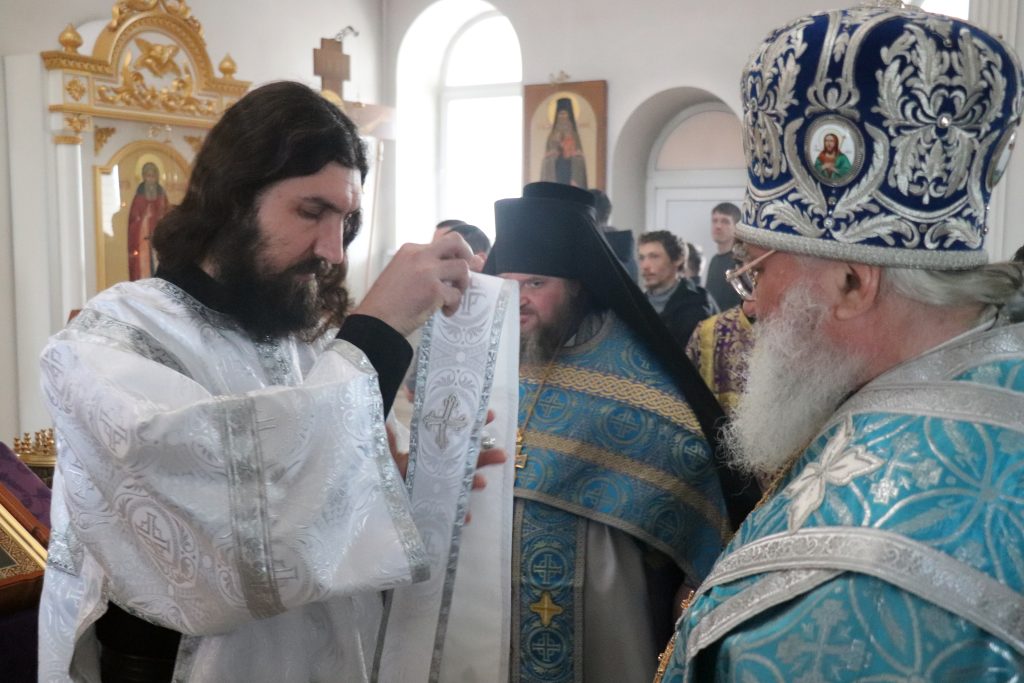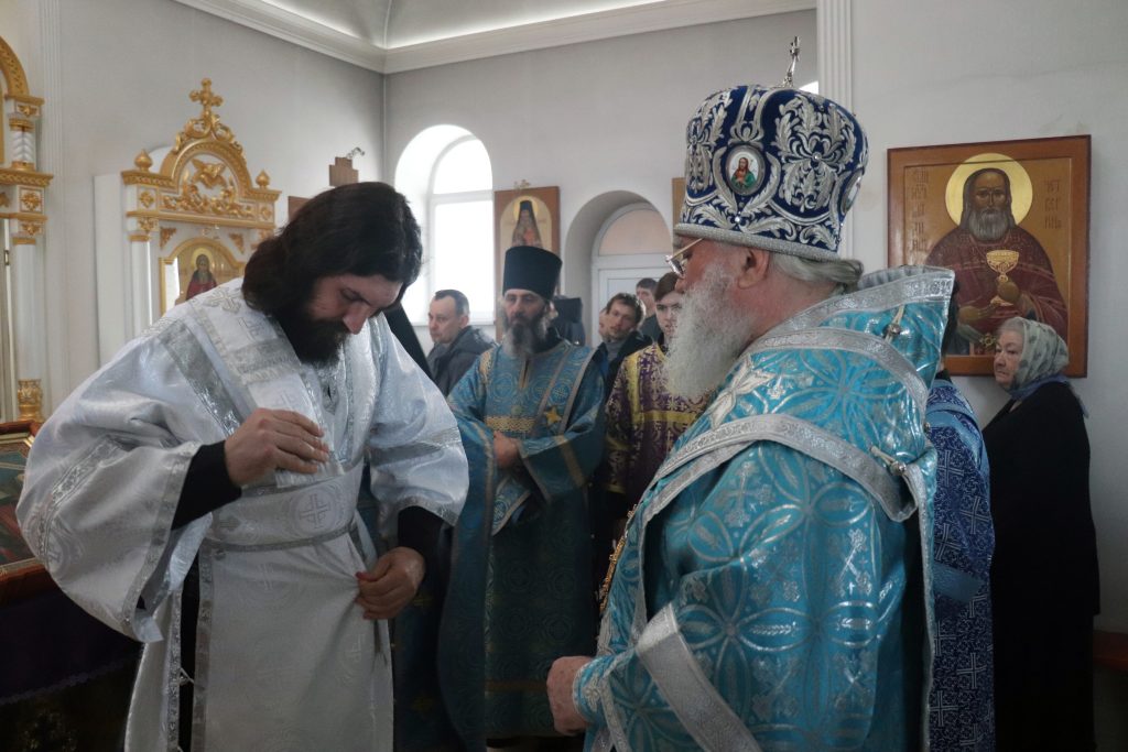 Перед Литургией Владыка Алексий совершил хиротесию во иподиакона монаха Владимира (Клейменова), а после Евхаристического канона архиерей рукоположил его в сан иеродиакона.
