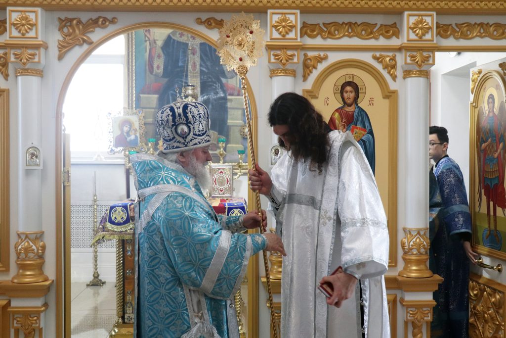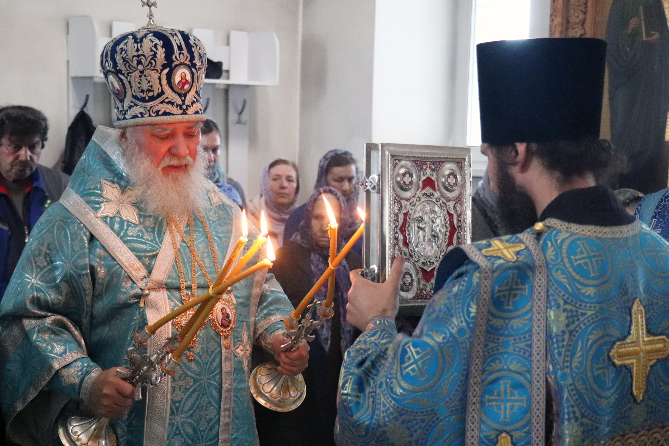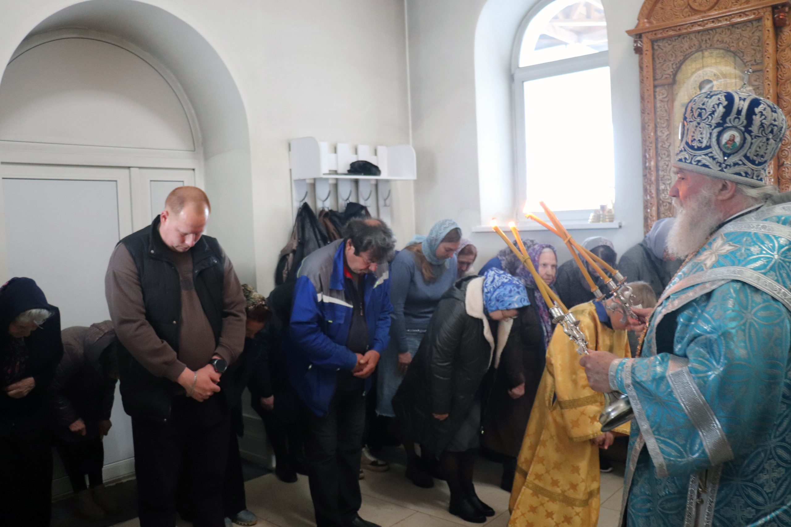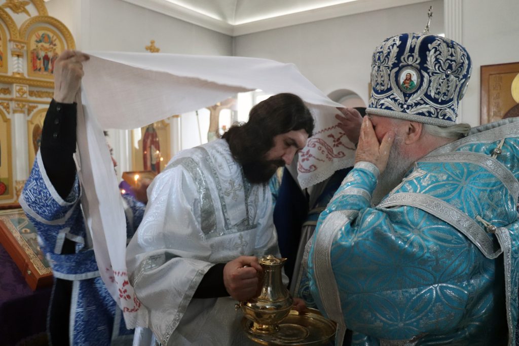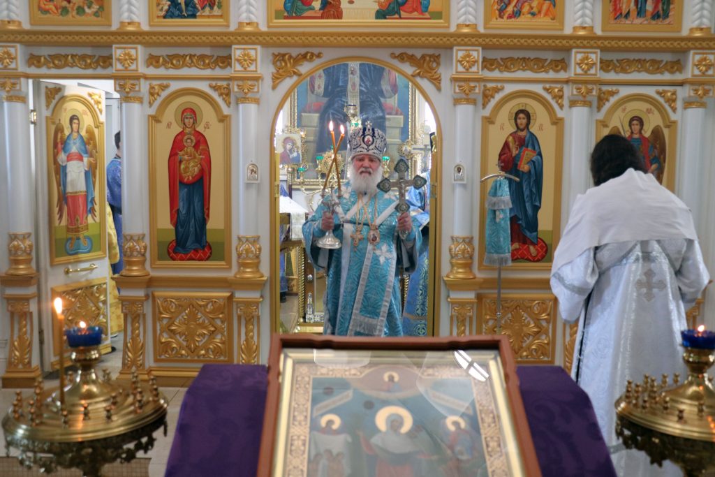 После чтения Евангелия Владыка Алексий обратился к прихожанам с проповедью, призвав благодарить Матерь Божию за то попечение духовное, которое оказывает Она каждому из нас.