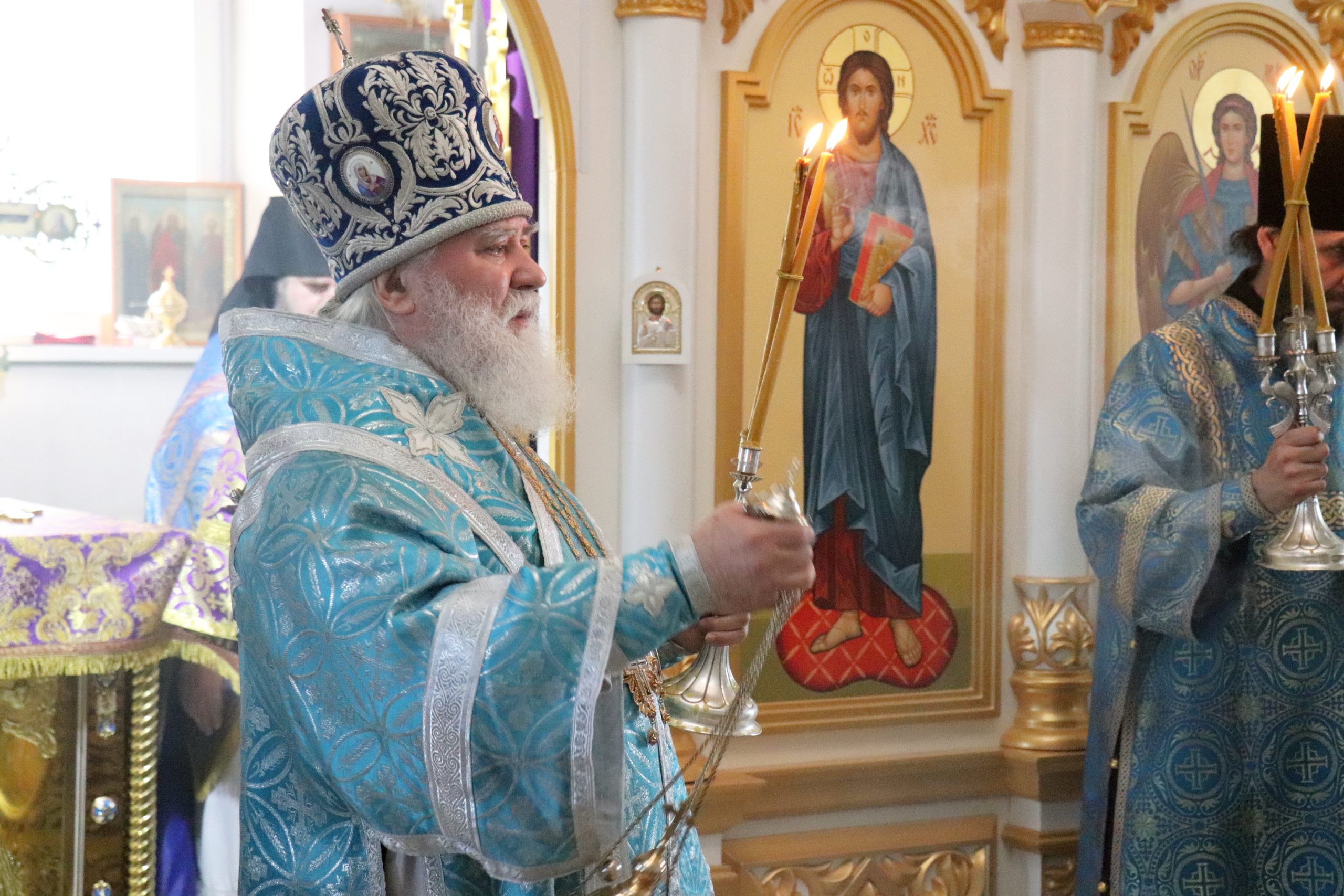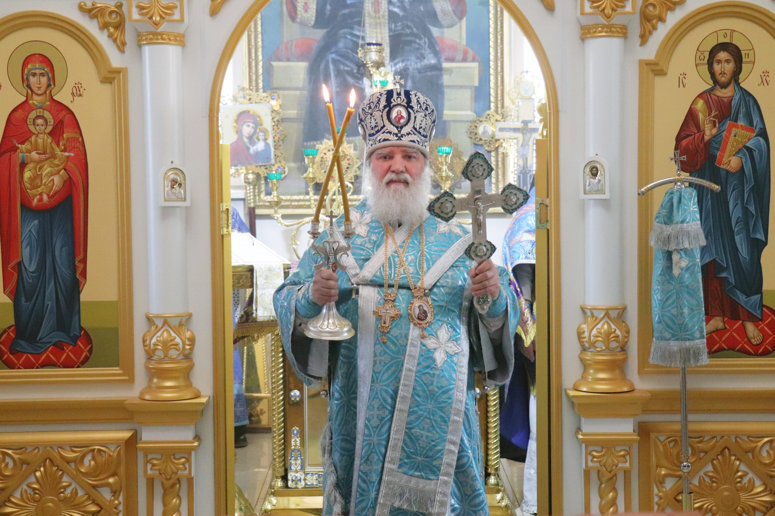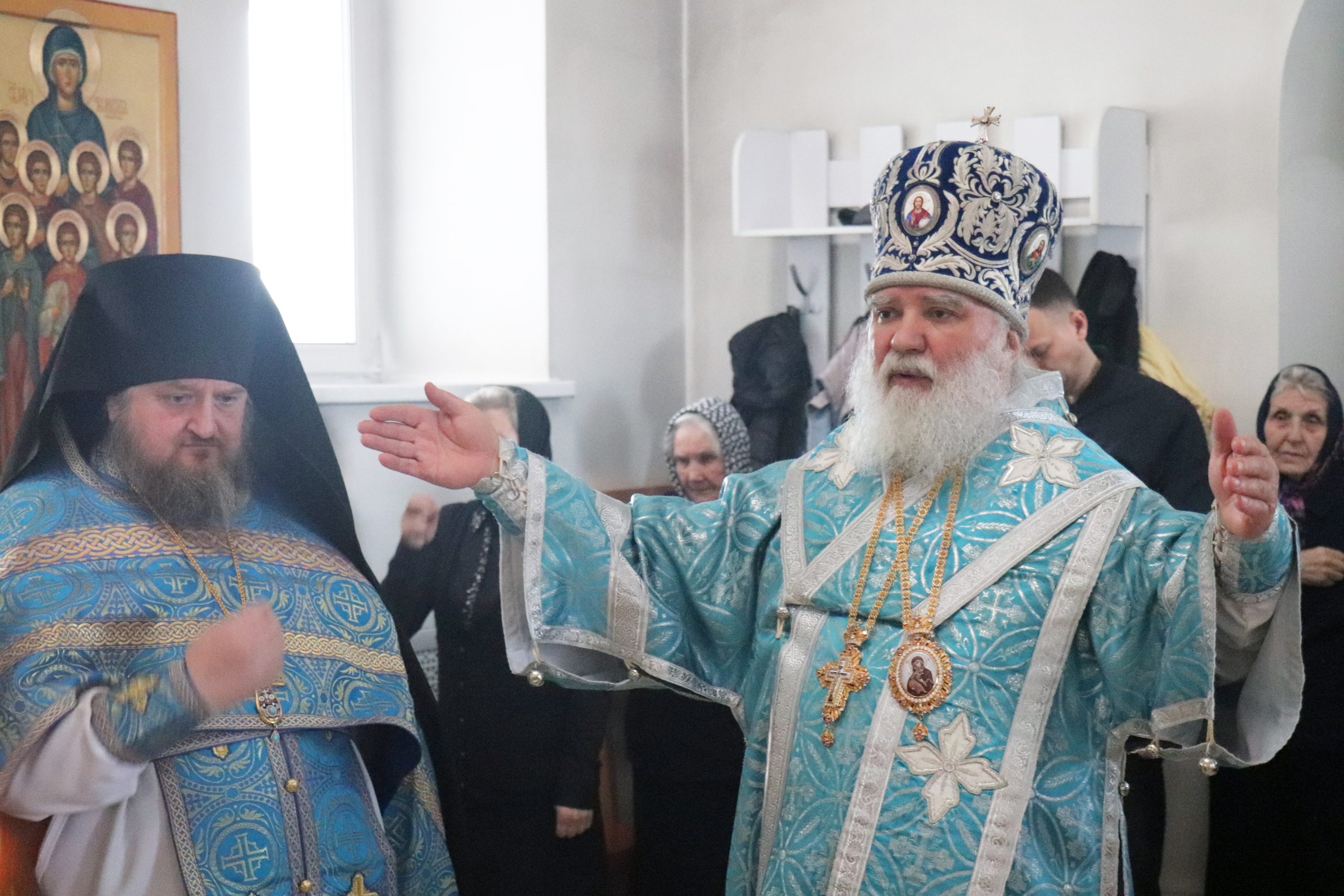После чтения Евангелия Владыка Алексий обратился к прихожанам с проповедью, призвав благодарить Матерь Божию за то попечение духовное, которое оказывает Она каждому из нас.